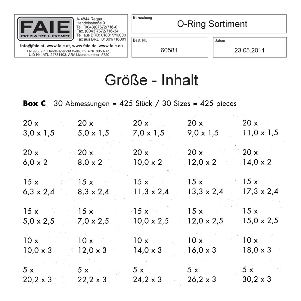 Informations sur le produit "Assortiment de joints toriques métrique NBR 70"