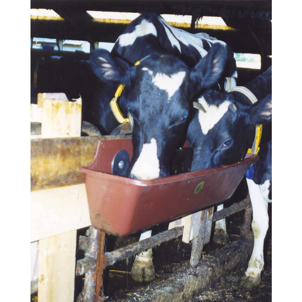 Mangeoire murale pour bovins, veaux, chevaux, moutons et chèvres ; Facile à nettoyer, polyvalent et très résistant. LxlxH : 120 x 29 x 25,5 cm (hauteur totale à l'arrière 36 cm, suspension murale comprise), contenu 50 l, poids 6 kg