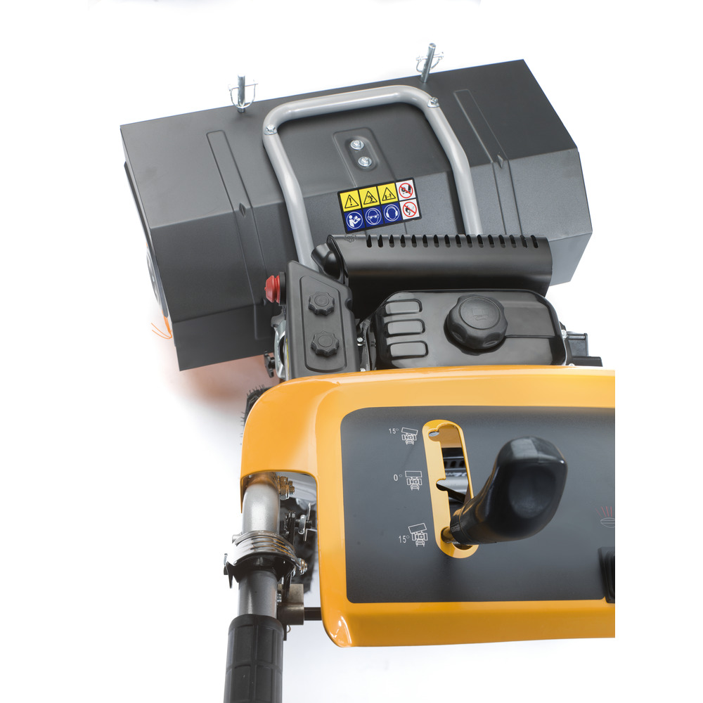 Données techniques : Déplacement : 212 cm³ Puissance : 4,4 kW / 5,6 CV Largeur de travail : 800 mm Brosse Ø : 355mm Système de démarrage : démarrage électrique Boîte de vitesses : disque à friction Entraînement : 5V + 2R Phare : LED
