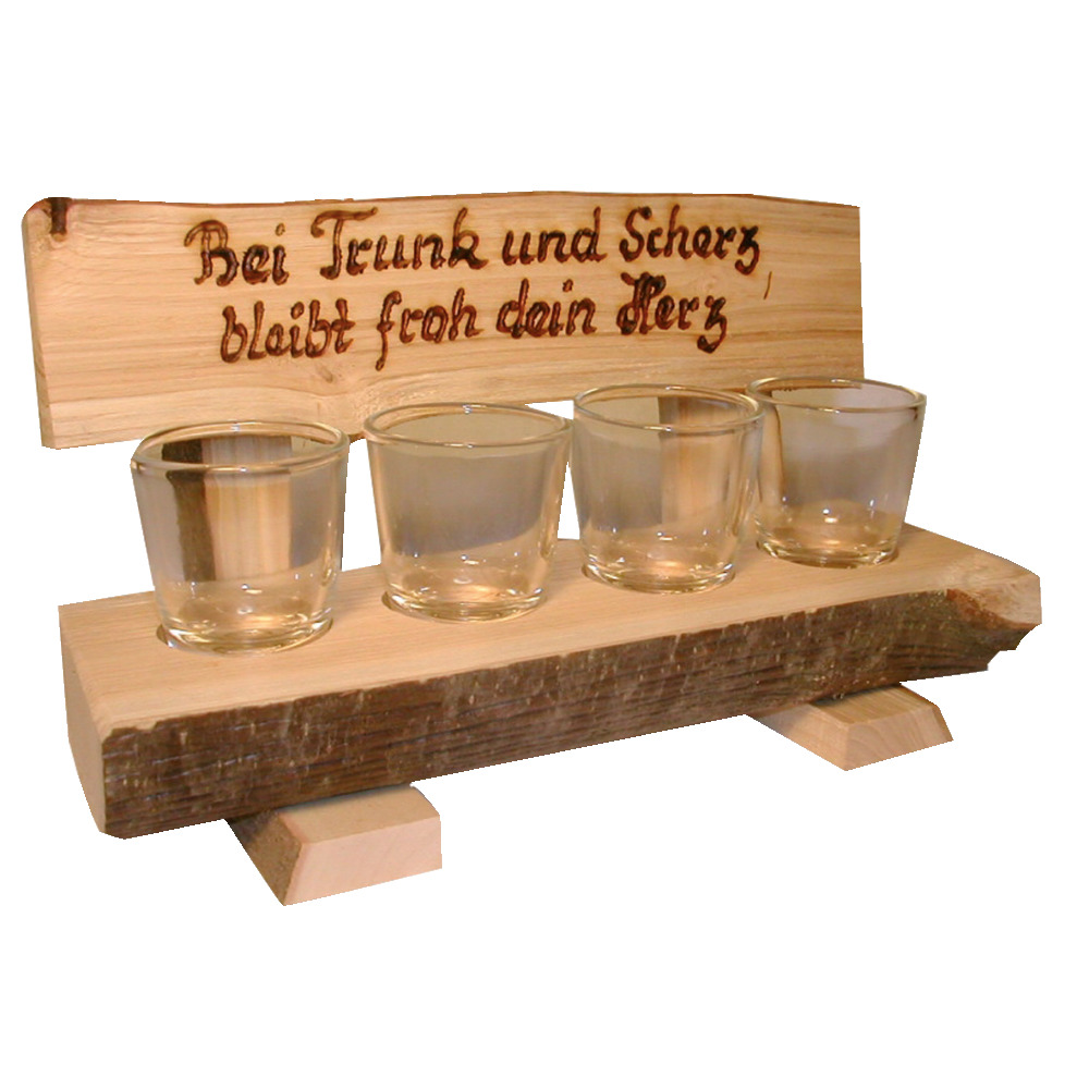 Informations sur le produit "Bankerl avec 4 timbres de schnaps avec inscription"