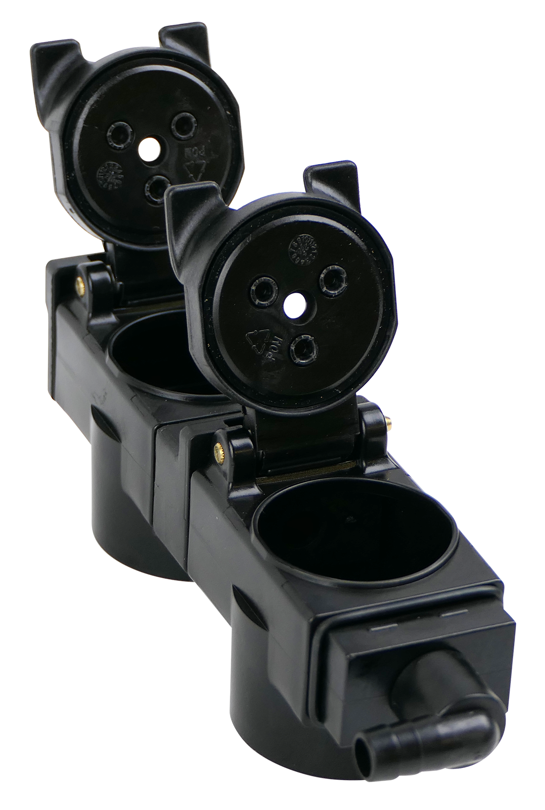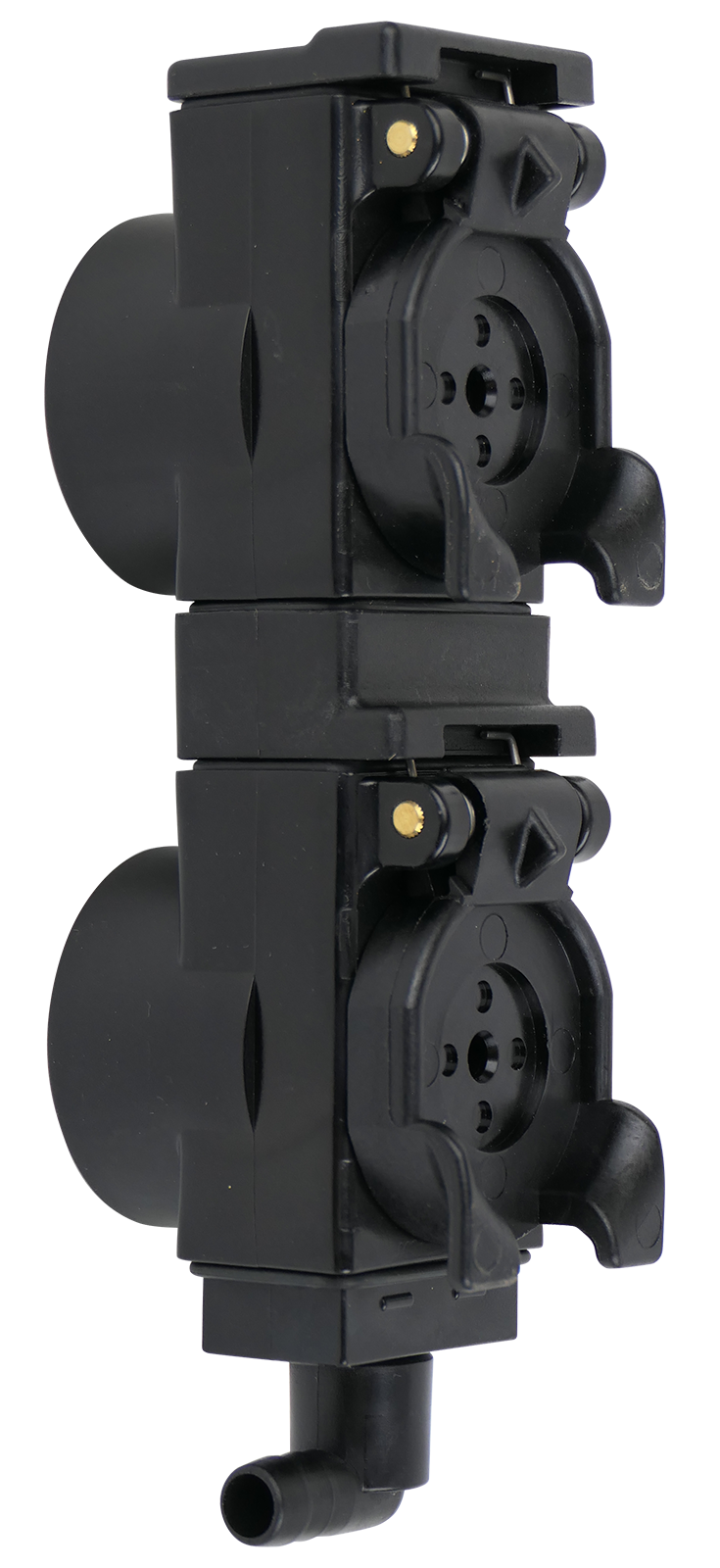 Boîtier de vidange d'huile à fuite plus rapide TARV avec différents espacements de trous avec bouchons anti-poussière. Le raccord de vidange d'huile de fuite est conçu à 90°. Des marquages colorés peuvent être commandés séparément. Vous pouvez les trouver sous clip couleur.