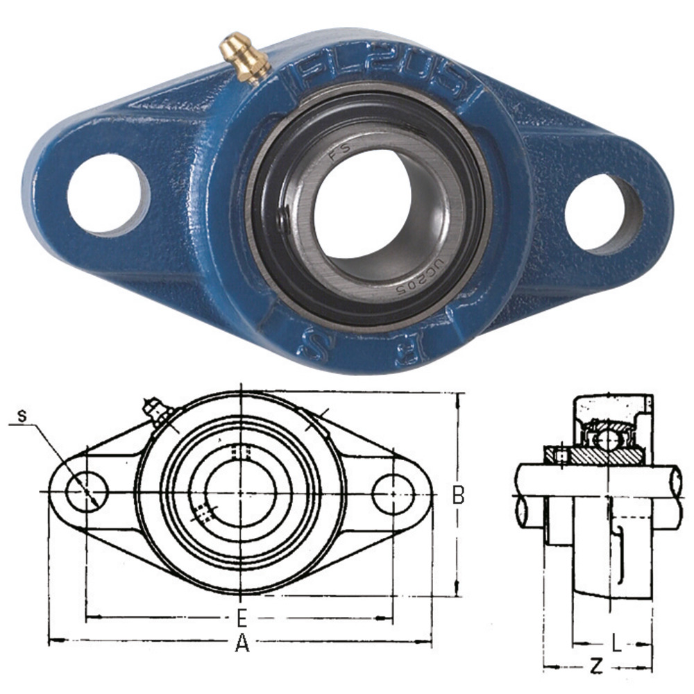 Informations sur le produit "Boîtier de roulement à bride 2 trous UCFL complet avec roulement"