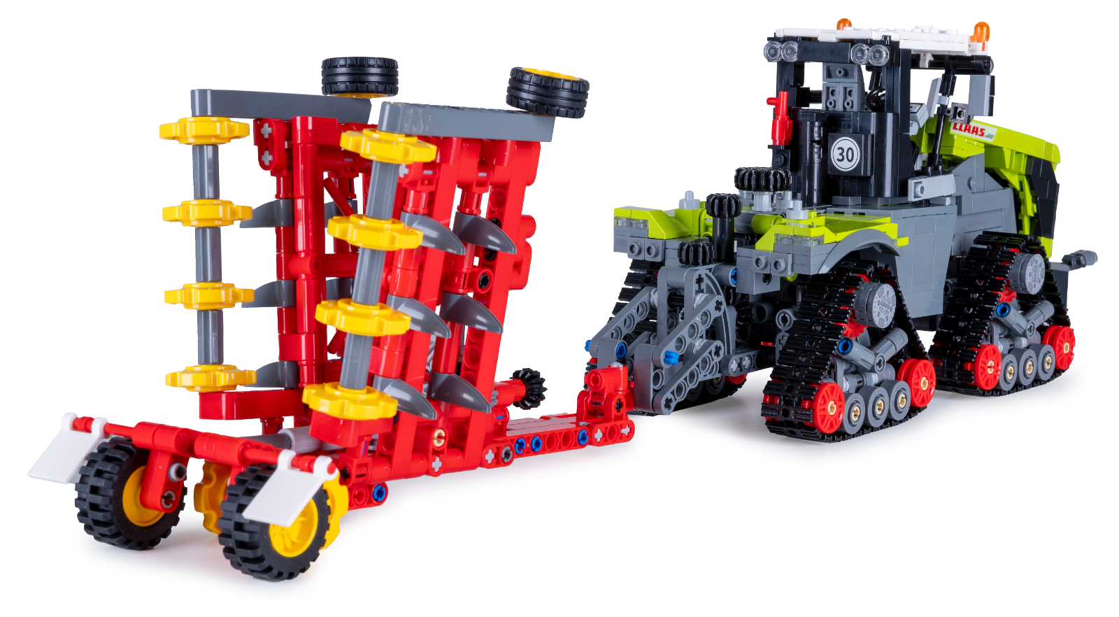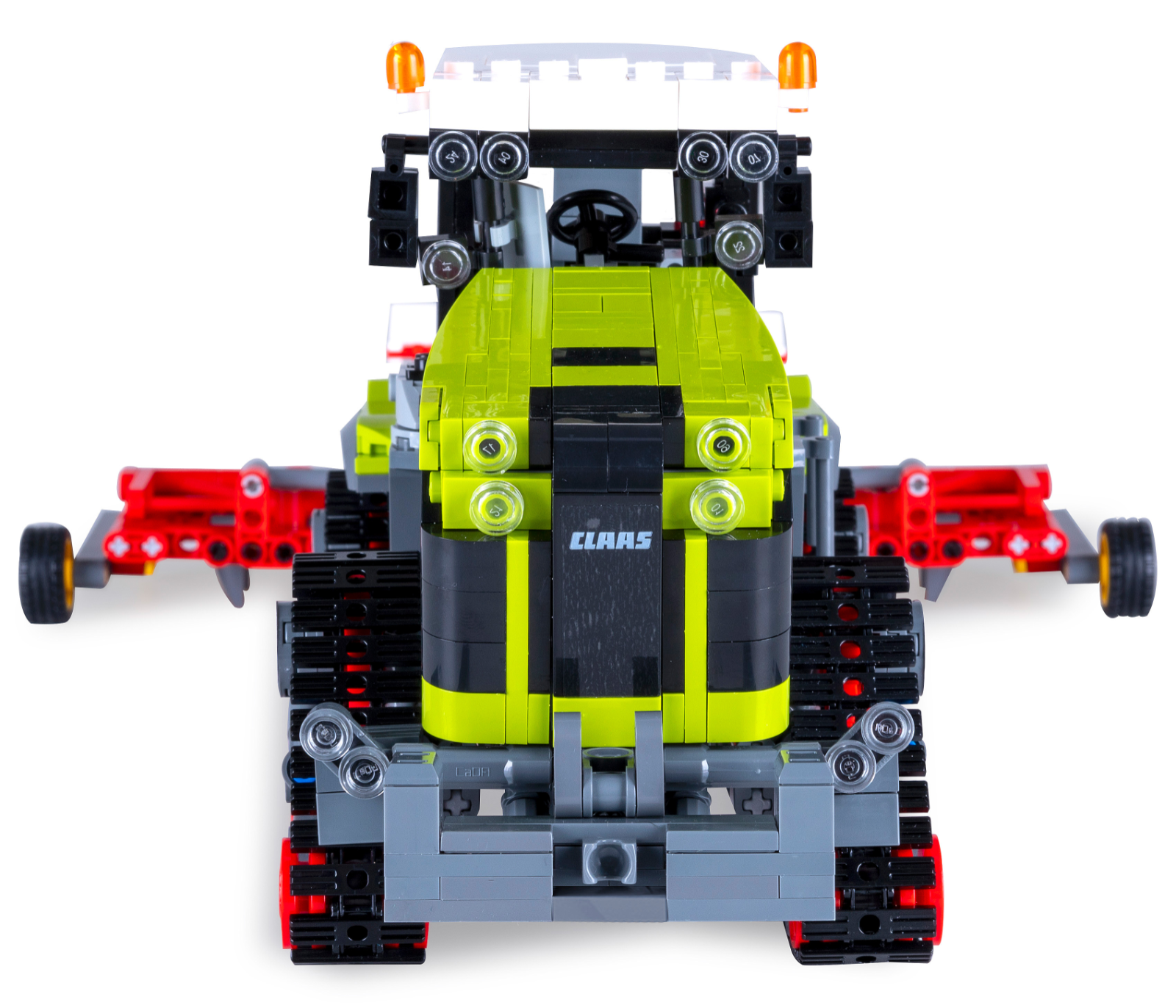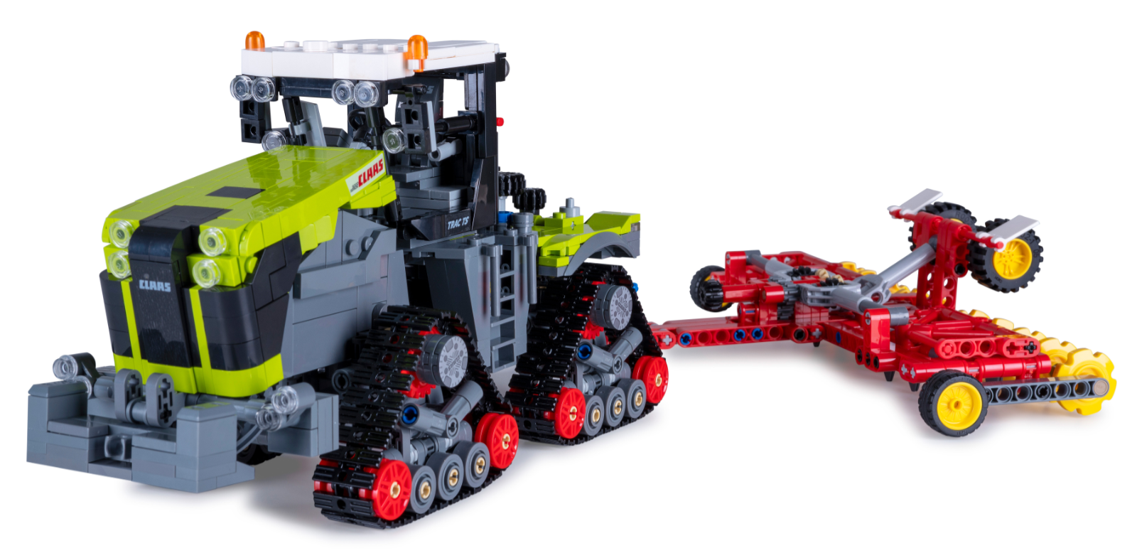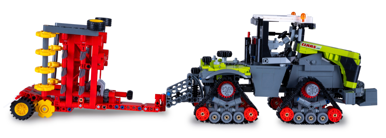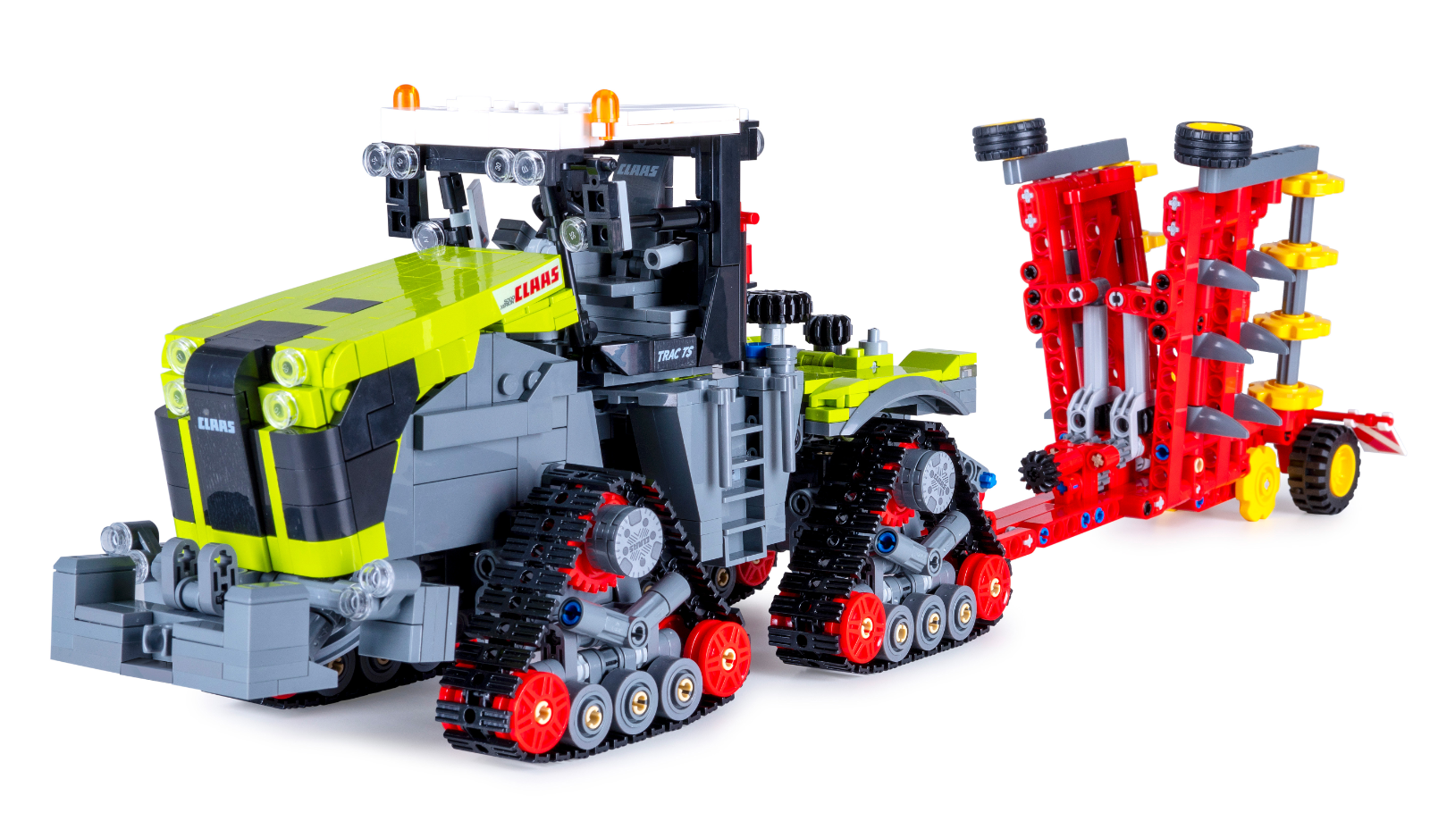 Composé de 1336 briques, ce tracteur impressionne par son authenticité et ses fonctionnalités, de son avant caractéristique à sa cabine ouverte, en passant par ses chenilles mobiles.