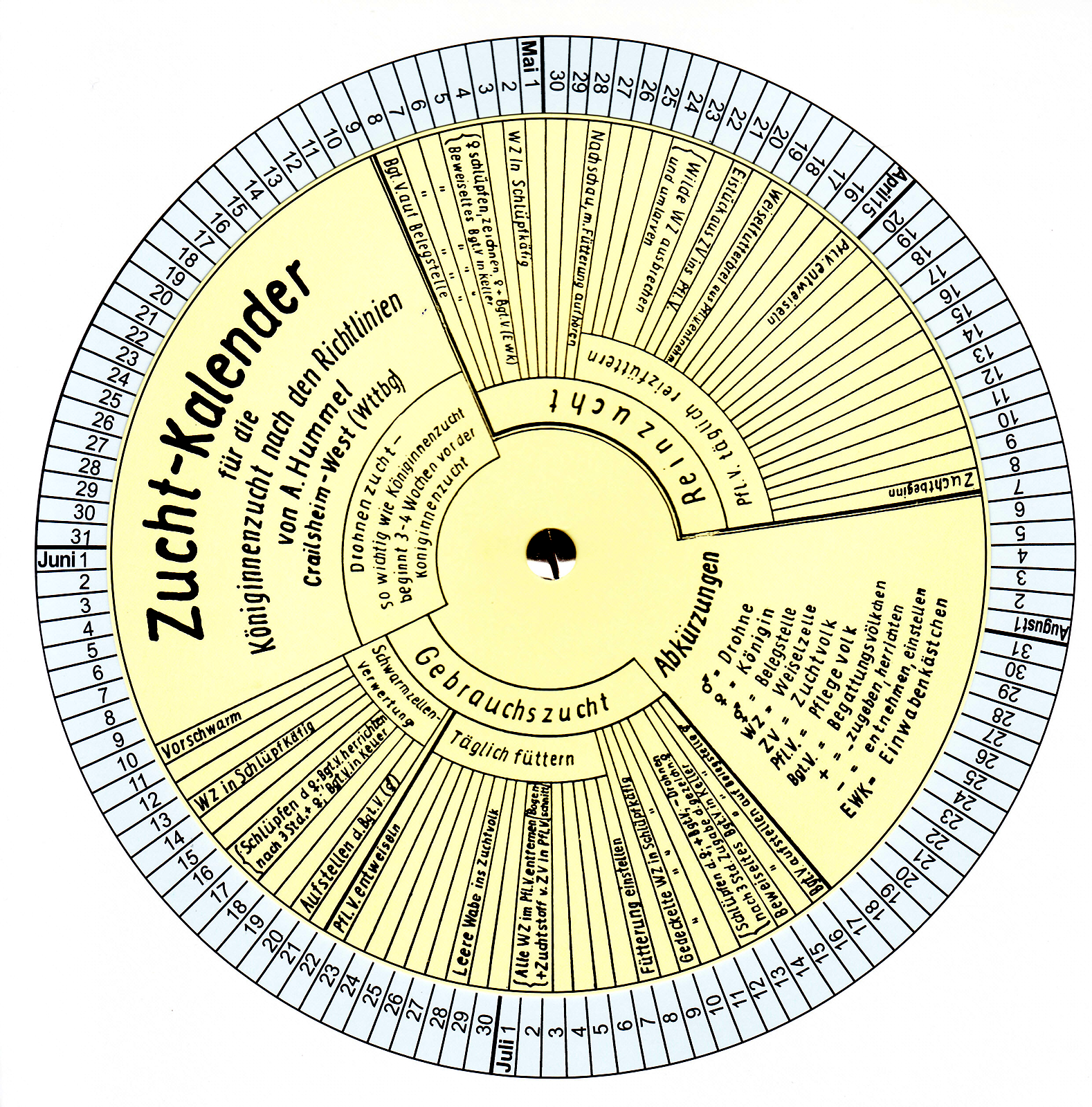 Un outil utile pour l'éleveur de reines. Dès le début de la série d'élevage, toutes les autres dates sont immédiatement lisibles.