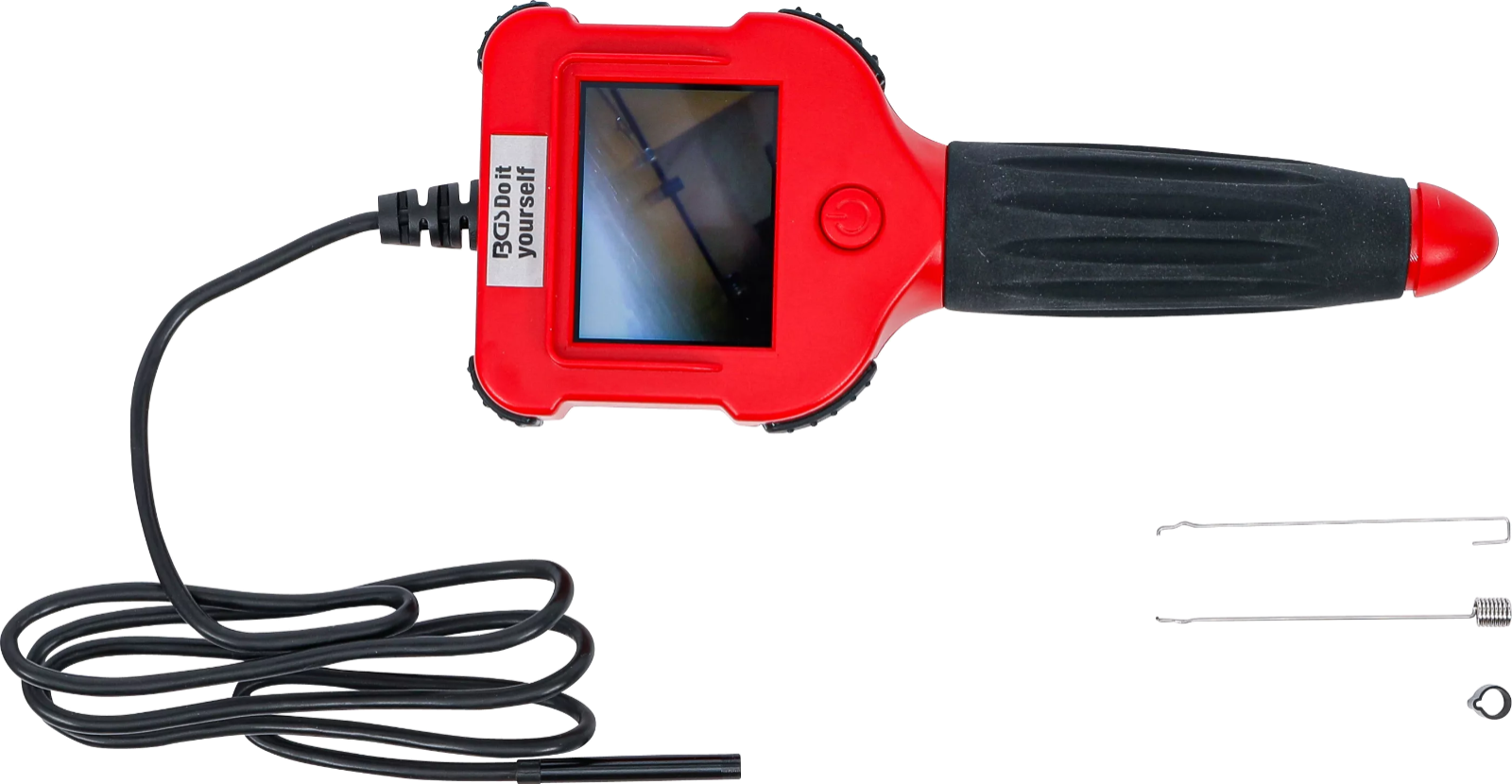 Parfaite pour l'inspection de cavités, de tuyaux et de moteurs, vidéos en temps réel d'une netteté exceptionnelle directement sur l'écran couleur 61 mm pouces, col de cygne de 1 mètre de long avec tête de caméra de Ø 5,5 mm et 6 LED intégrées, aimant et crochet inclus pour récupérer les petites pièces, protection contre l'eau et la poussière selon IP67 – idéal pour la plomberie, la construction et l'automobile.