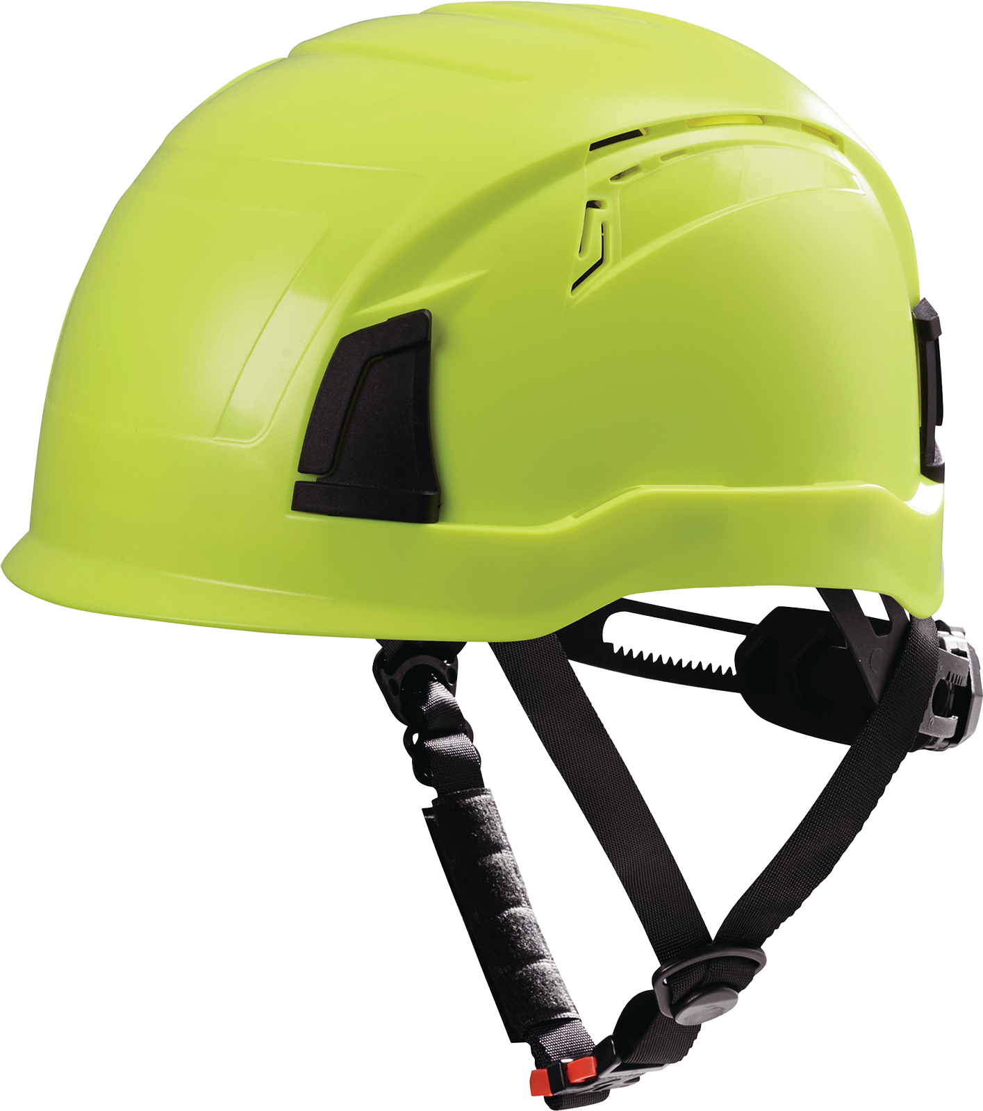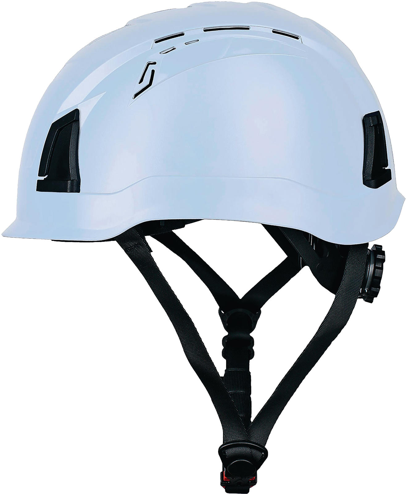Casque de protection de travail moderne et léger, forme spéciale pour les alpinistes et les grimpeurs, grand confort de port, réglage de la taille par système à cliquet.