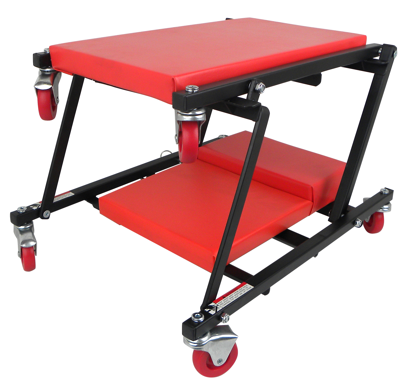 Chariot de montage pratique avec plan de couchage rembourré 1030x415x160 mm. Roulement facile grâce à 6 roues. D'un seul geste, la couchette devient un tabouret de travail pratique. Poids seulement 11,8 kg.