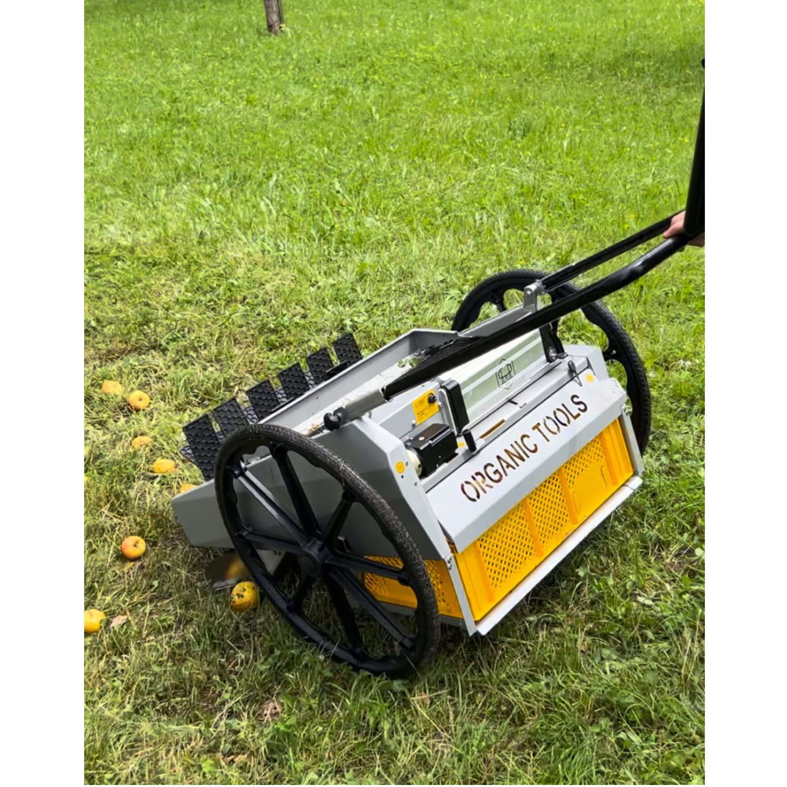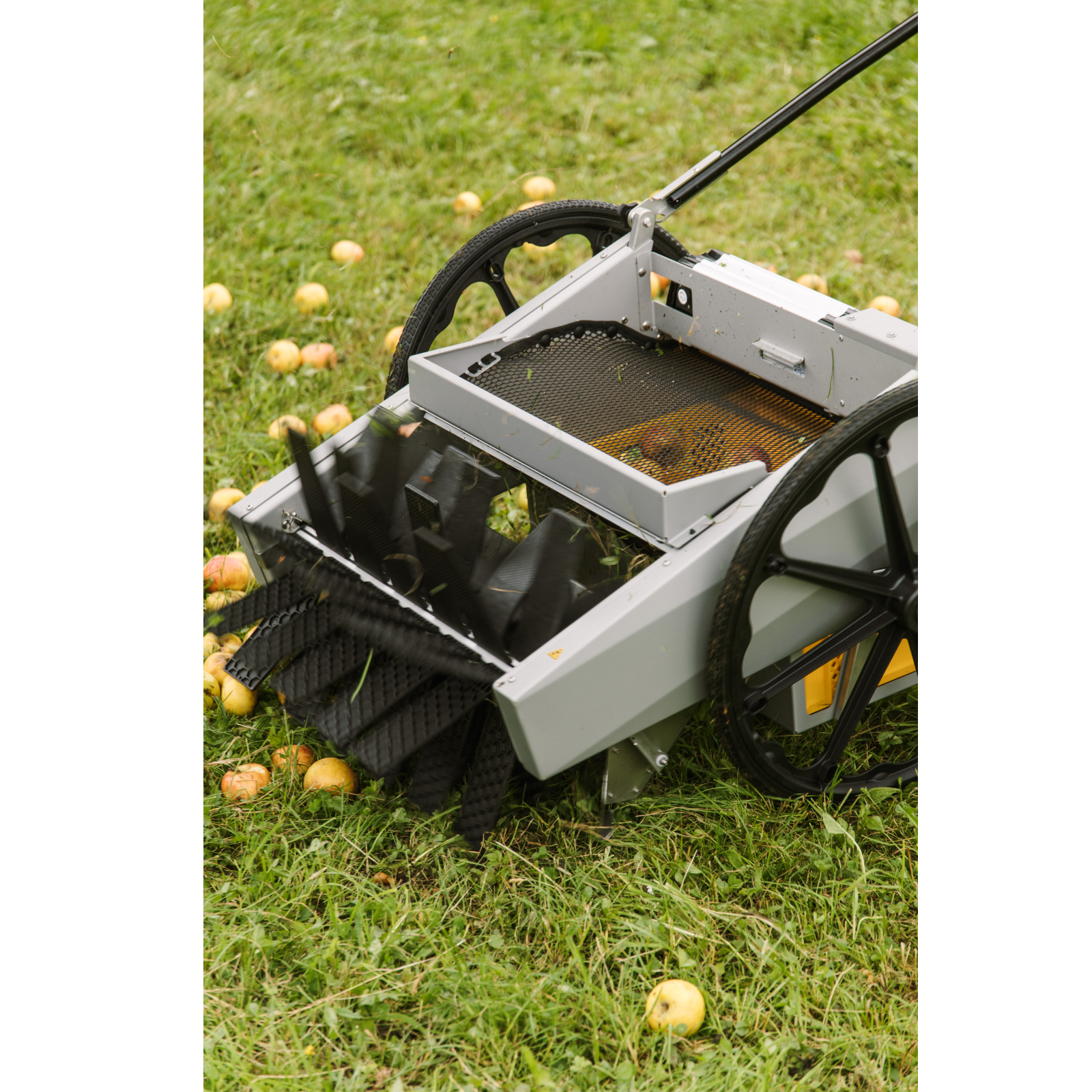 La chenille à fruits est un collecteur de fruits fonctionnant sur batterie qui se caractérise par une récolte douce et efficace ainsi qu'un excellent rapport qualité-prix !