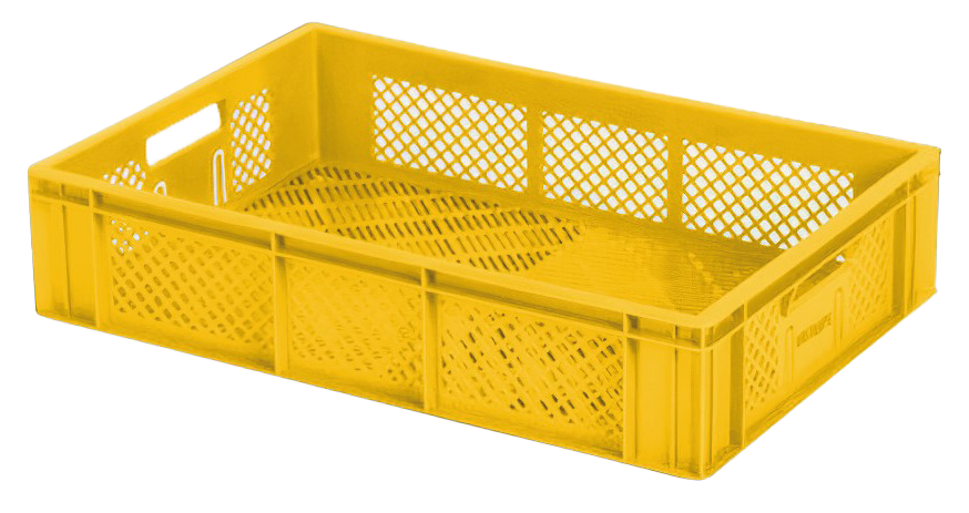 Boîte à fruits et légumes empilable avec logo en relief « Organic-Tools » des deux côtés. Confortable à transporter grâce à de grandes poignées ergonomiques. Convient également aux noisettes et aux noix grâce aux petites ouvertures. Tailles de palettes euro empilables. Insensible aux acides et aux alcalis. Insipide et inodore. Sécurité de la nourriture. Résistant au froid et à la chaleur de -40° à +80°C. Résistant aux UV. Couleur jaune. Volume environ 35 litres. Poids à vide 1 400 g. 600x400x170mm.