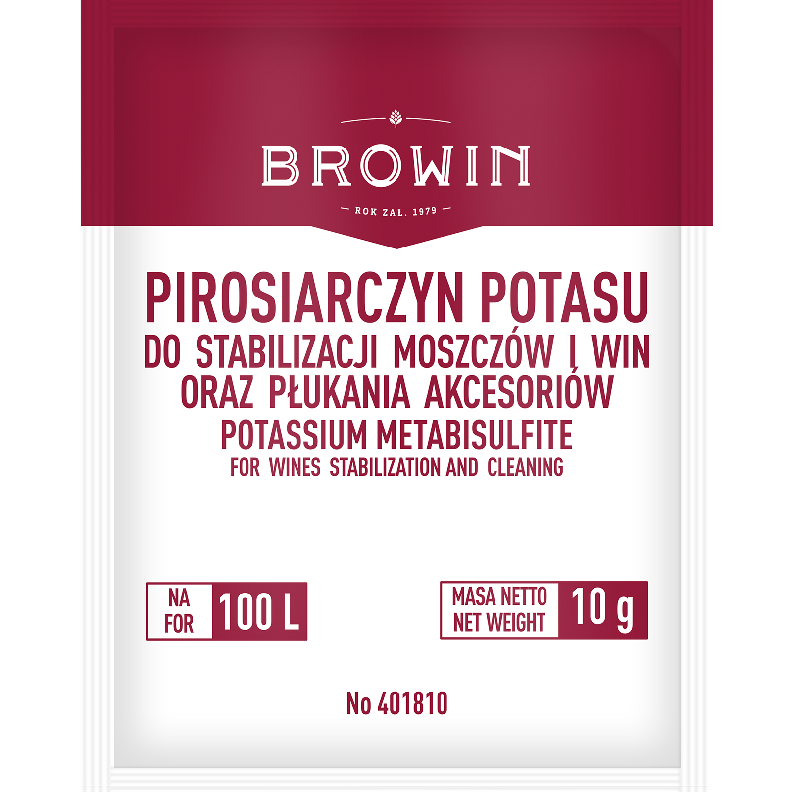 - Métabisulfite de potassium 10 g - agent pour stabiliser le moût et le vin ainsi que pour rincer les accessoires de vinification,