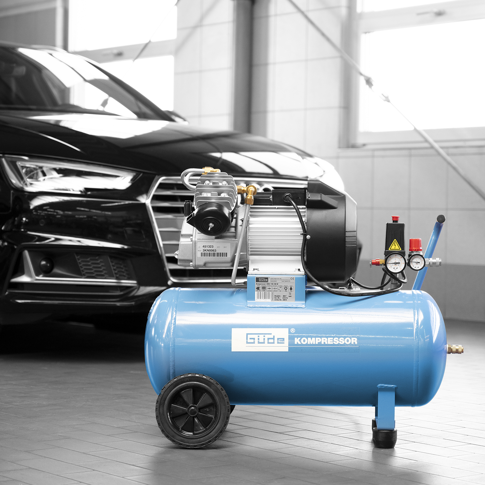 Compresseur puissant avec moteur 2 cylindres en V lubrifié à l'huile, débit d'aspiration de 395 l/min et pression maximale de 10 bars. Moteur de 2,2 kW/3,0 ch/230 volts à 2800 tr/min. Grande cuve de 50 l avec roues en plastique et tampons en caoutchouc pour un transport facile et un fonctionnement silencieux. Équipement complet avec pressostat, réducteur de pression et un raccord à pression sur le réducteur de pression et sur la cuve. Dimensions : 785 x 415 x 685 mm, poids propre : 37 kg. Appareil idéal pour les particuliers exigeants et en cas de besoin temporaire d'air comprimé plus important.
