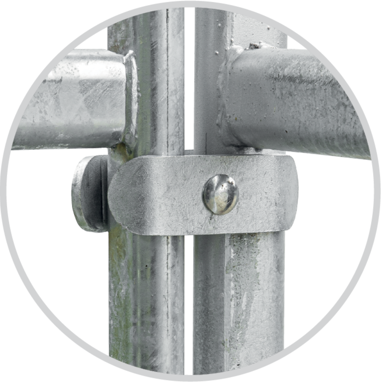 Pour relier deux panneaux (tubes ovales plats) ou un panneau avec porte (tube rond) à un panneau (tube ovale plat). Galvanisé.