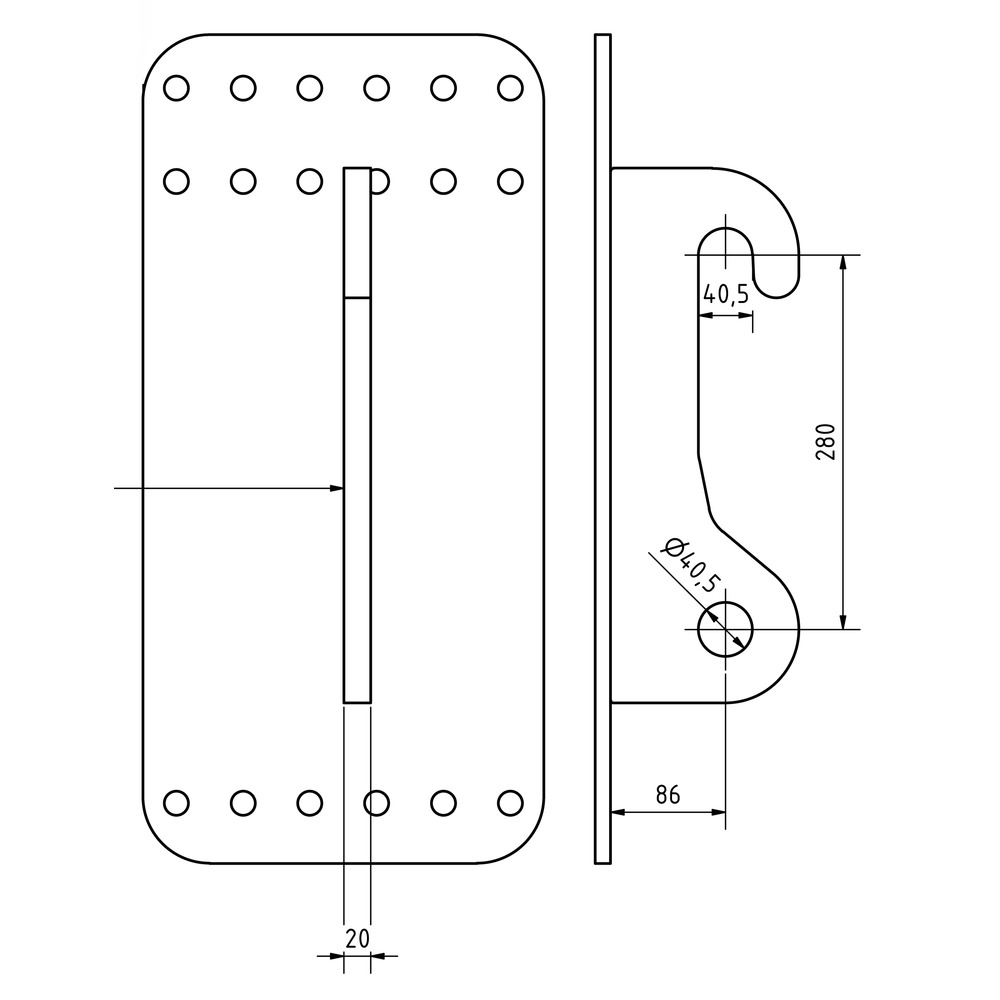 Nous livrons les accessoires en usine avec deux plaques perforées solidement soudées. Les supports spécifiques aux véhicules porteurs y sont simplement vissés. Lors de la commande d'un accessoire correspondant, veuillez préciser le type de chargeuse télescopique, de chantier ou sur pneus concernée.