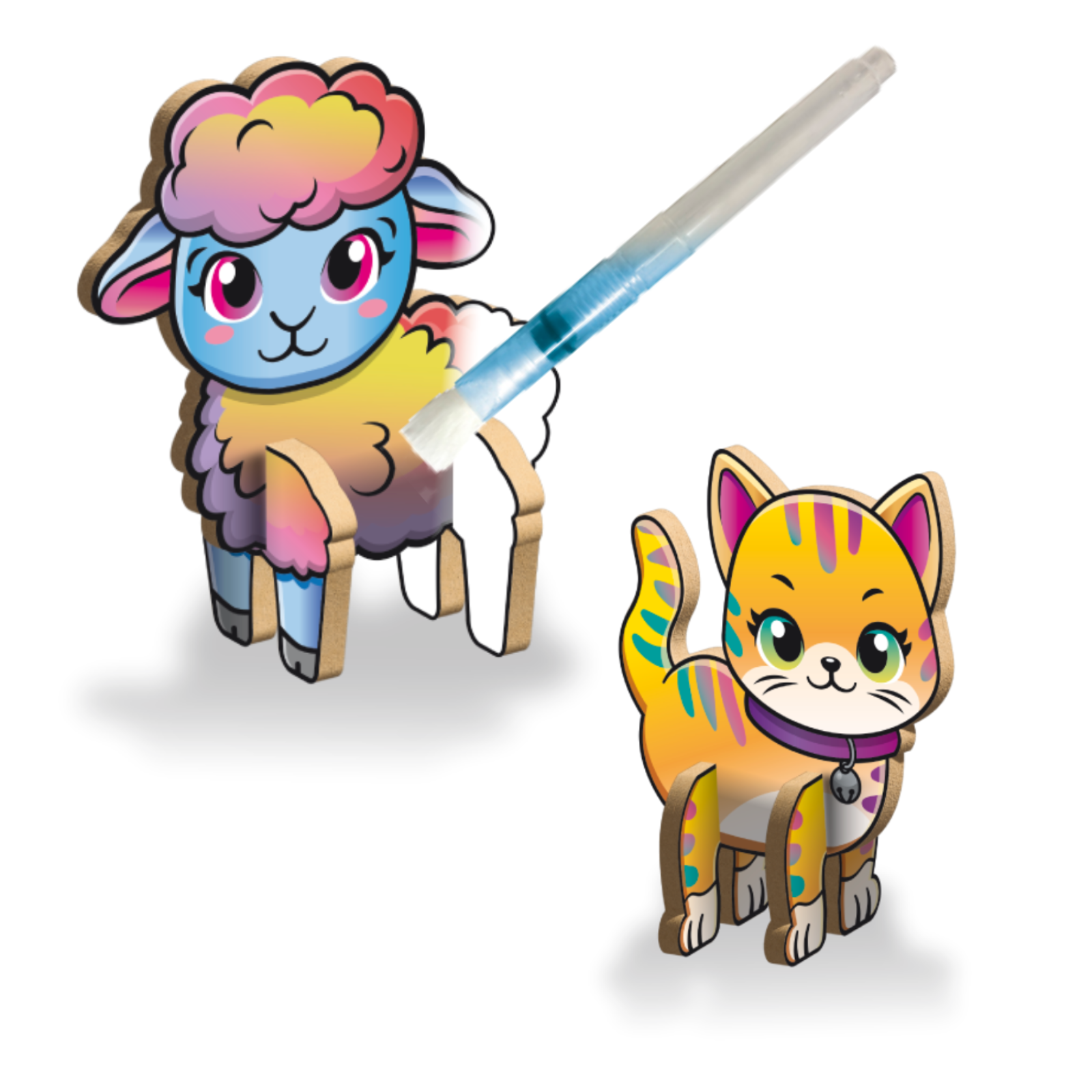 Create N Colour – Peindre avec de l'eau, c'est magique ! Avec le kit de figurines en bois 3D Create N Colour, la peinture devient une véritable aventure !