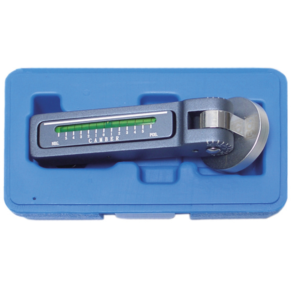 Dispositif magnétique de réglage du carrossage des roues avec double possibilité de réglage. Le dispositif permet de mesurer l'angle de l'amortisseur avant sa dépose afin d'avoir à nouveau exactement le même angle au remontage. Avec deux possibilités de réglage, réglage grossier via Mécanisme de pliage à 180°, puis réglage fin par vis de réglage. Livré dans une cassette plastique.