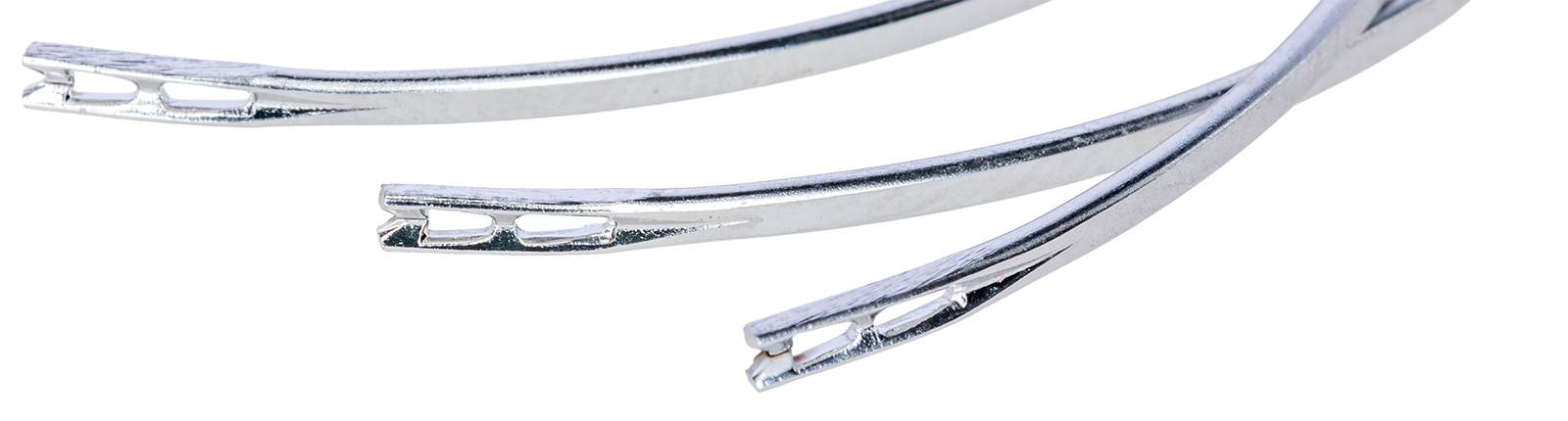Chaîne à ressort : enfilage facile du fil de suture, celui-ci s’insérant par le haut.