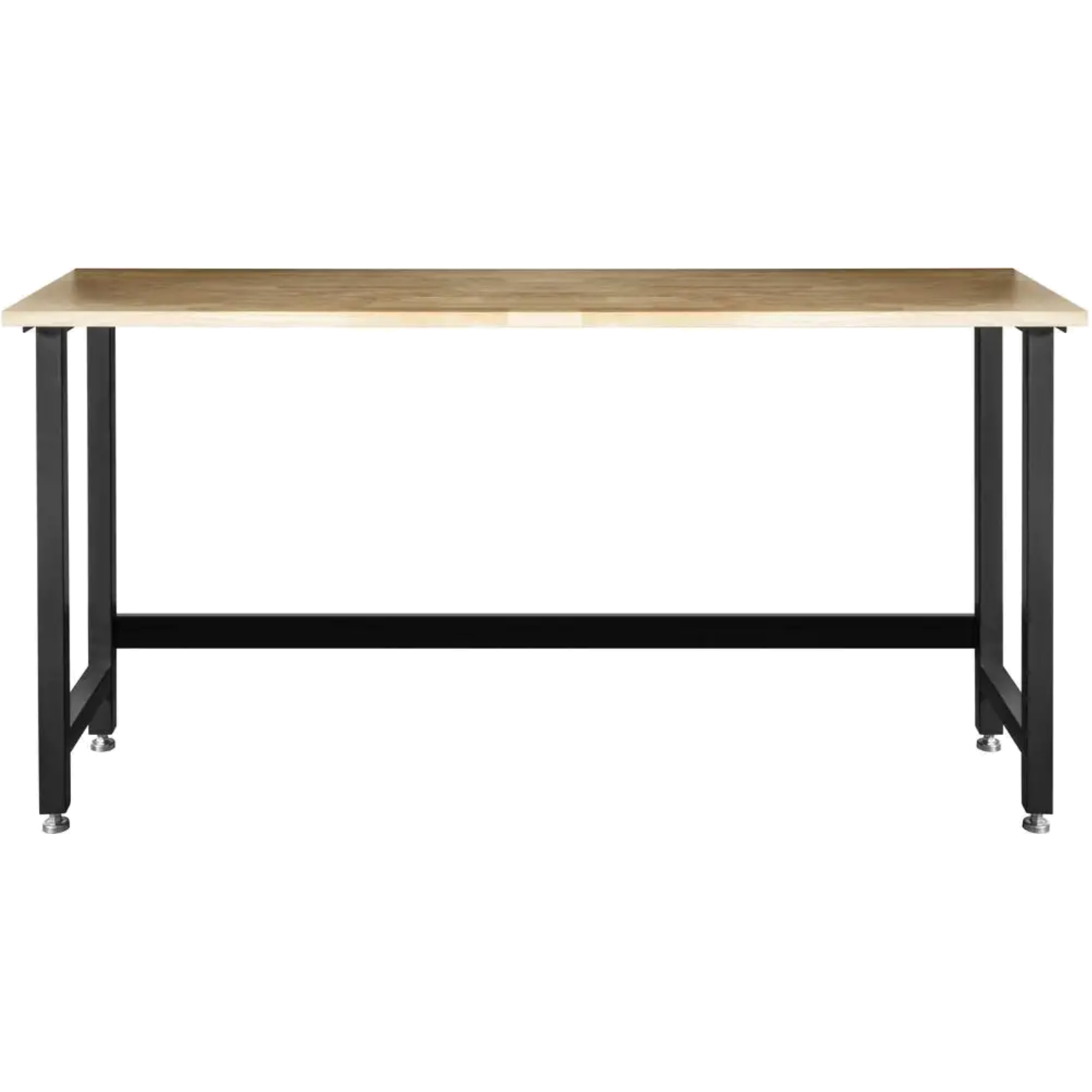 Le plan de travail de l'établi est en bois d'hévéa, qui se caractérise par son extrême dureté et donc par sa robustesse, son insensibilité et la longévité qui en résulte.