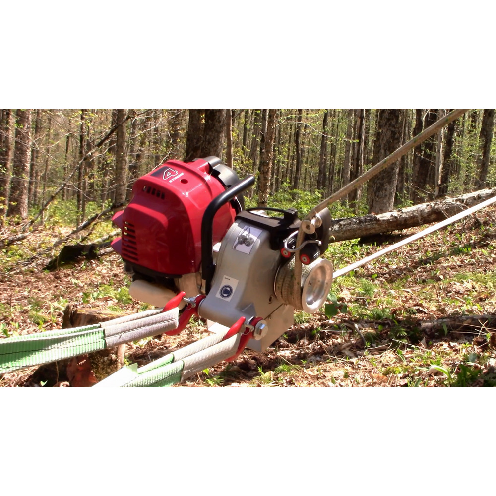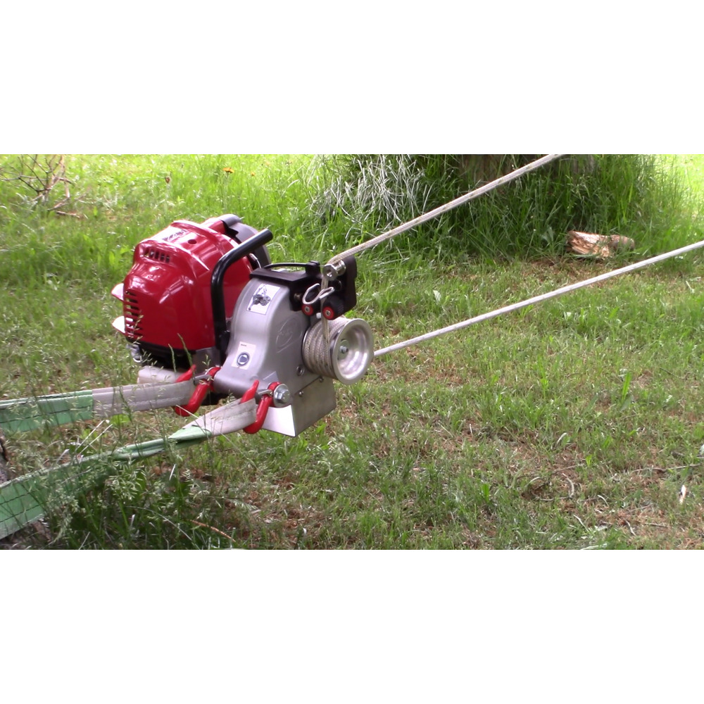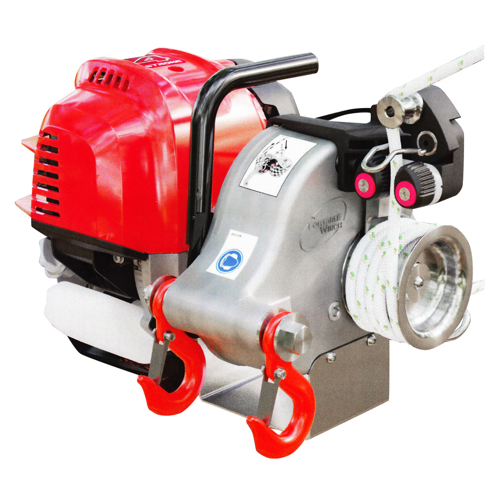 Avec moteur essence Honda 4 temps fiable de 50 cm³, adapté aux câbles en plastique tressés en spirale d'un diamètre de 10 à 12 mm, jusqu'à 13,4 mètres/minute vitesse de corde maximale, longueur de corde illimitée, avec un poids de 12 kg extrêmement léger et peut donc être utilisé partout : par exemple pour les travaux d'entretien des arbres, pour le sauvetage de la faune , pour les opérations de pompiers ou de catastrophe.
