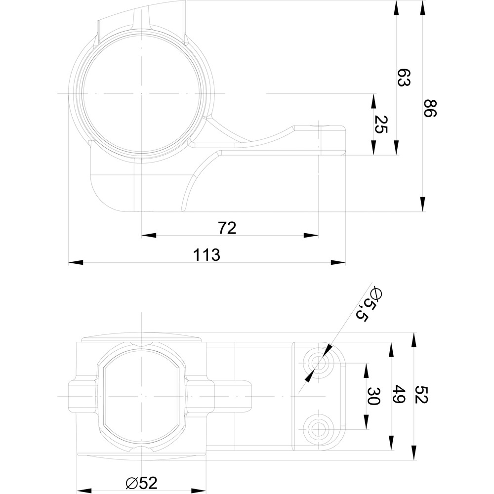 Dimensions LxHxP : 52x113x86mm, 2 trous 5,5mm espacement des trous 30mm