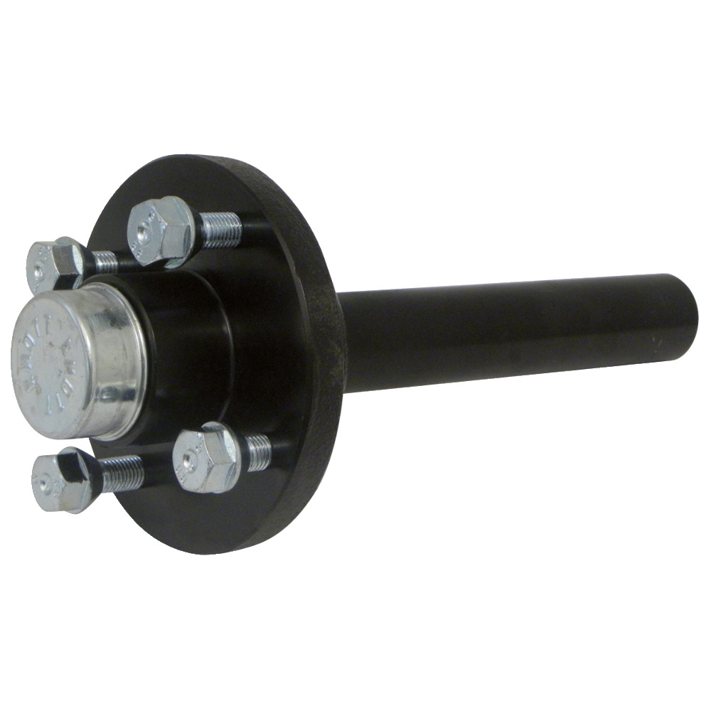 Fusée courante, fusée d'essieu pour jantes à 4 trous, avec boulons de roue pour remorques non freinées.