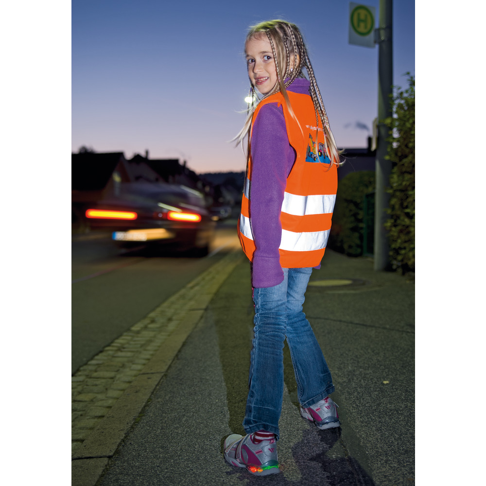 Le gilet de sécurité pour enfants offre aux plus petits plus de protection dans la circulation routière. Avec fermeture velcro. Couleur : orange fluo.
