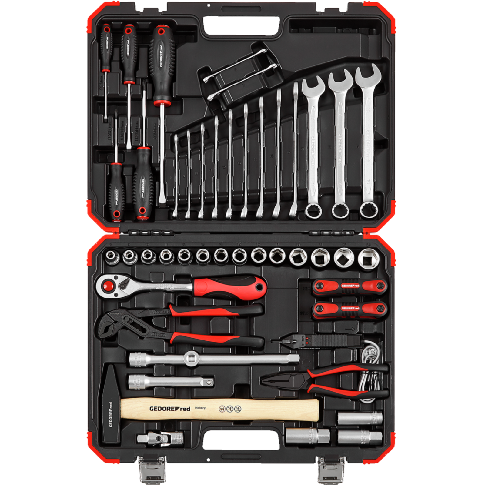 Le tout dans la qualité Gedore-red éprouvée. Les outils sont rangés de manière stable dans une valise en plastique massive, ce qui garantit un transport facile.