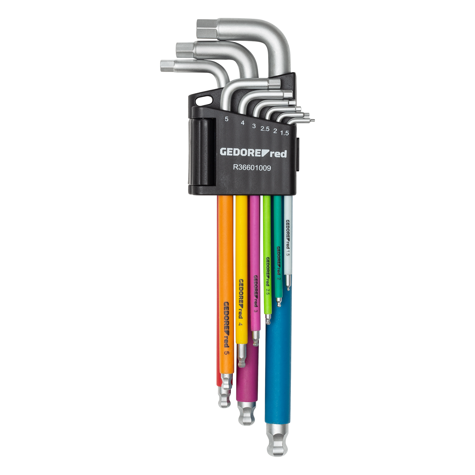 Codage couleur avec revêtement en plastique pour trouver plus rapidement la bonne clé coudée.
