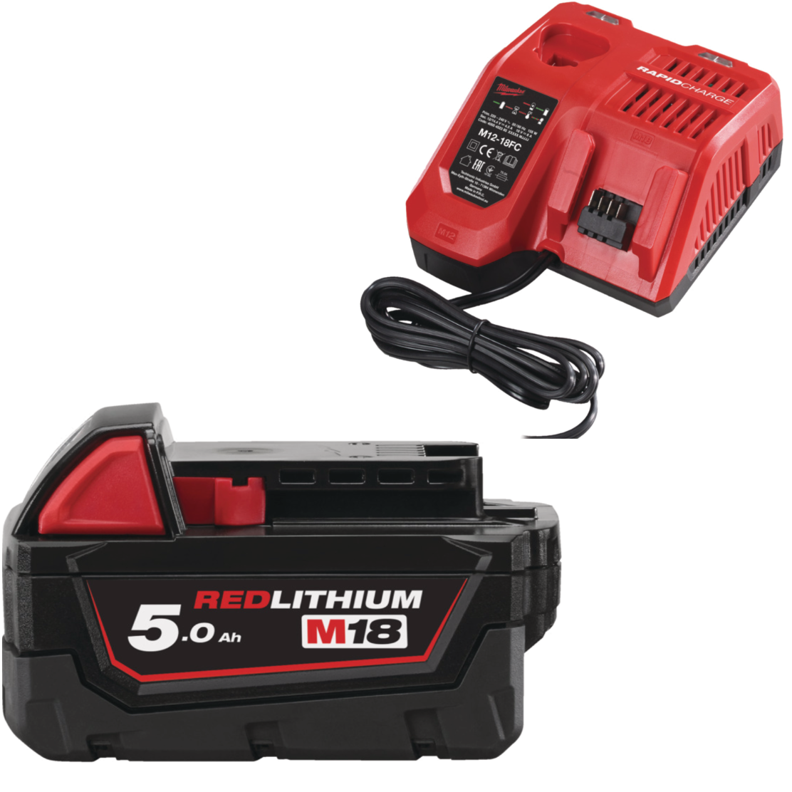 Entrée à prix avantageux dans le monde des outils électriques Milwaukee. Comprend un chargeur universel pour batteries Milwaukee 18V et 12V et une batterie 18V / 5,0 Ah.