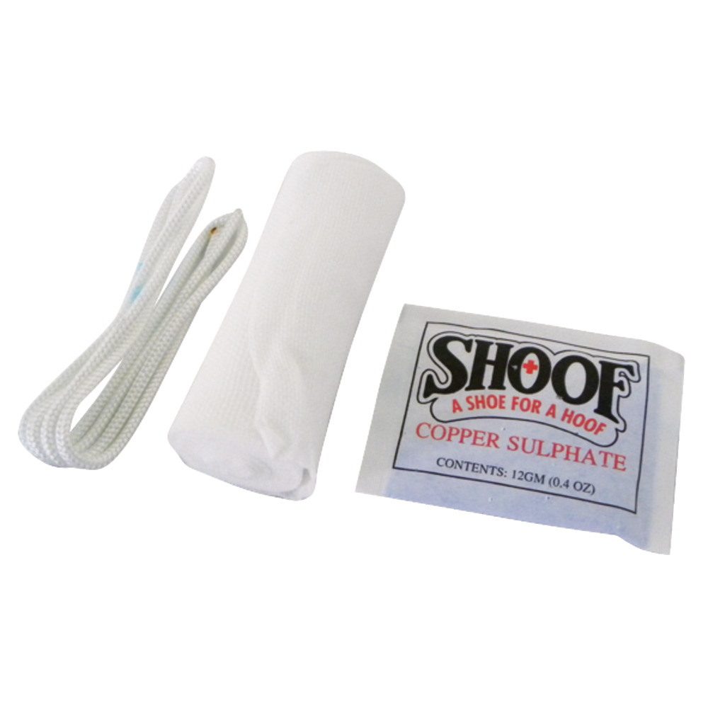 Bandage de gaze, sac de sulfate de cuivre et laçage.