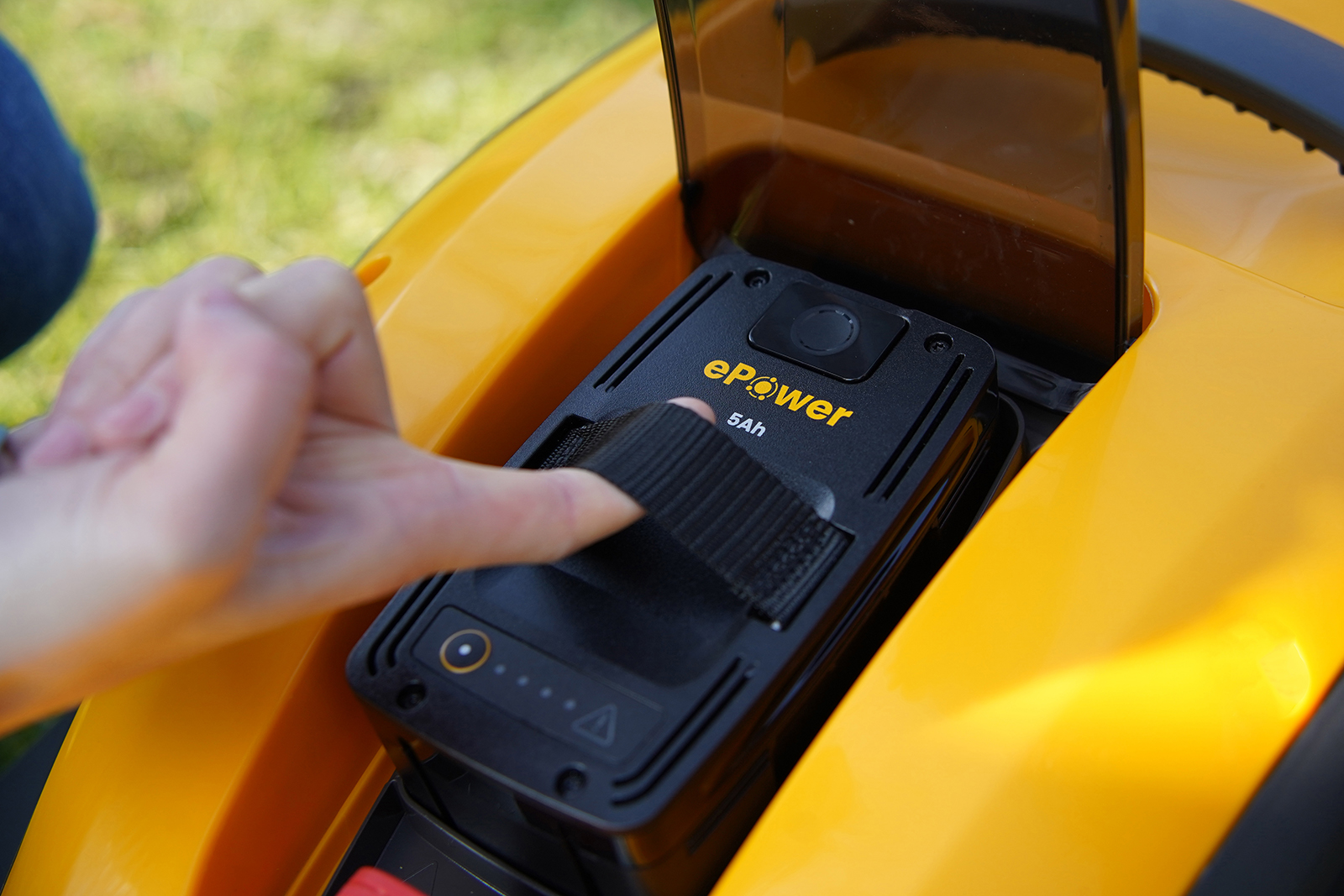 Batterie intégrée 48 V 5 Ah pour une puissance et une autonomie accrues, idéale pour les pelouses jusqu'à 450 m²