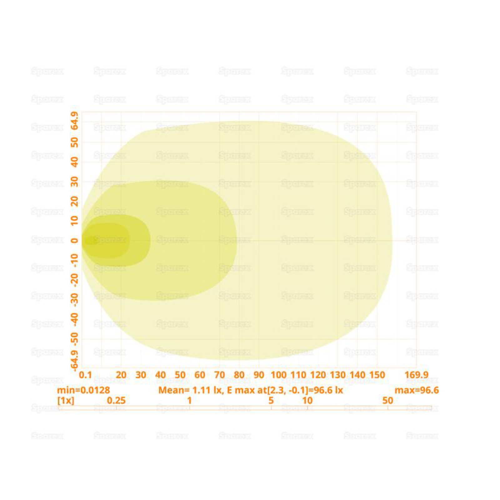 La lampe de travail à LED offre une excellente luminosité de 9720 lumens/6100 lumens efficaces, avec un angle de faisceau de 180°. Cela le rend idéal pour une utilisation dans l'agriculture, les municipalités, la construction, l'industrie et dans les zones où une forte lumière est requise.