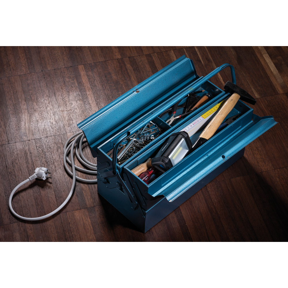 Lampe polyvalente, résistante aux chocs et aux éclaboussures selon IP54, 2 modes d'éclairage, dispose également d'un aimant intégré dans la base - peut donc être utilisée partout avec une tête de lampe réglable, en raison de sa taille, elle peut également tenir dans une boîte à outils ! Comprend 3 piles AA, durée d'éclairage 35h, portée lumineuse 22m et 230Lm