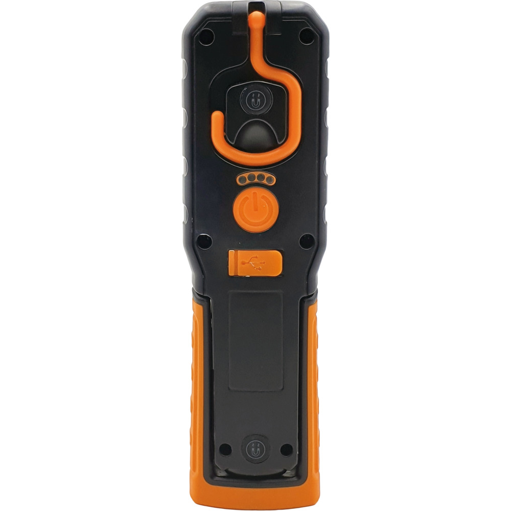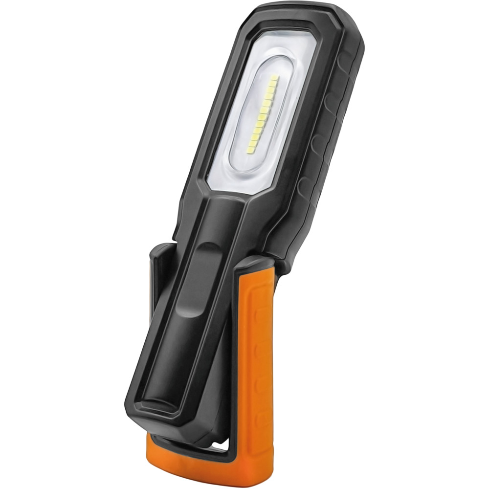 Lampe LED de haute qualité, dimmable, avec boîtier en plastique robuste à haute résistance aux chocs. Avec pied de lampe avec aimant, réglable à 180° et dépliable, crochet de suspension pivotant à 360°. Avec affichage de l'état de la batterie et de la charge. Rechargeable via une prise de chargement Micro USB, avec câble de chargement inclus. Batterie 3,7V 2Ah. Lampe de travail LED 6W, spot 1,5W.
