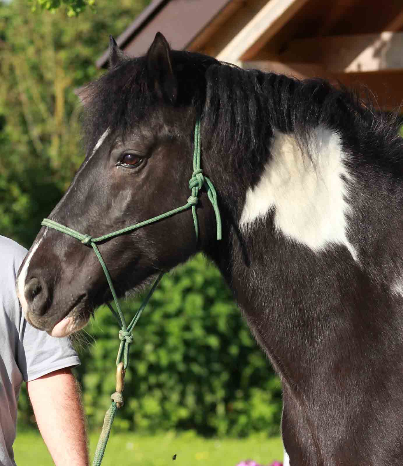 Le licol à nœuds est extrêmement résistant à la déchirure et ne doit jamais rester sur le cheval dans l'écurie ou au pré.