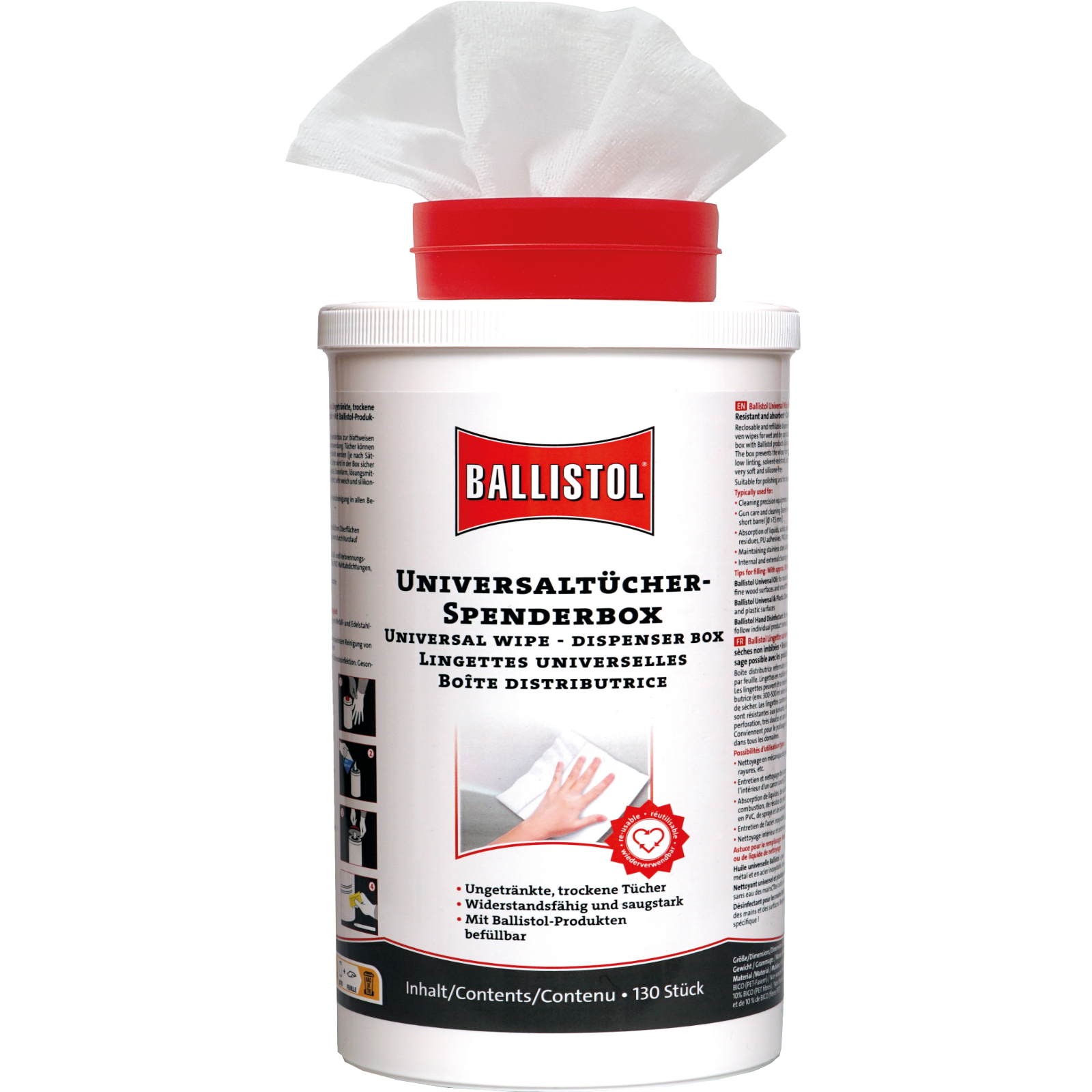 Chiffons universels résistants, très absorbants et secs. Convient à presque tous les produits liquides Ballistol.
