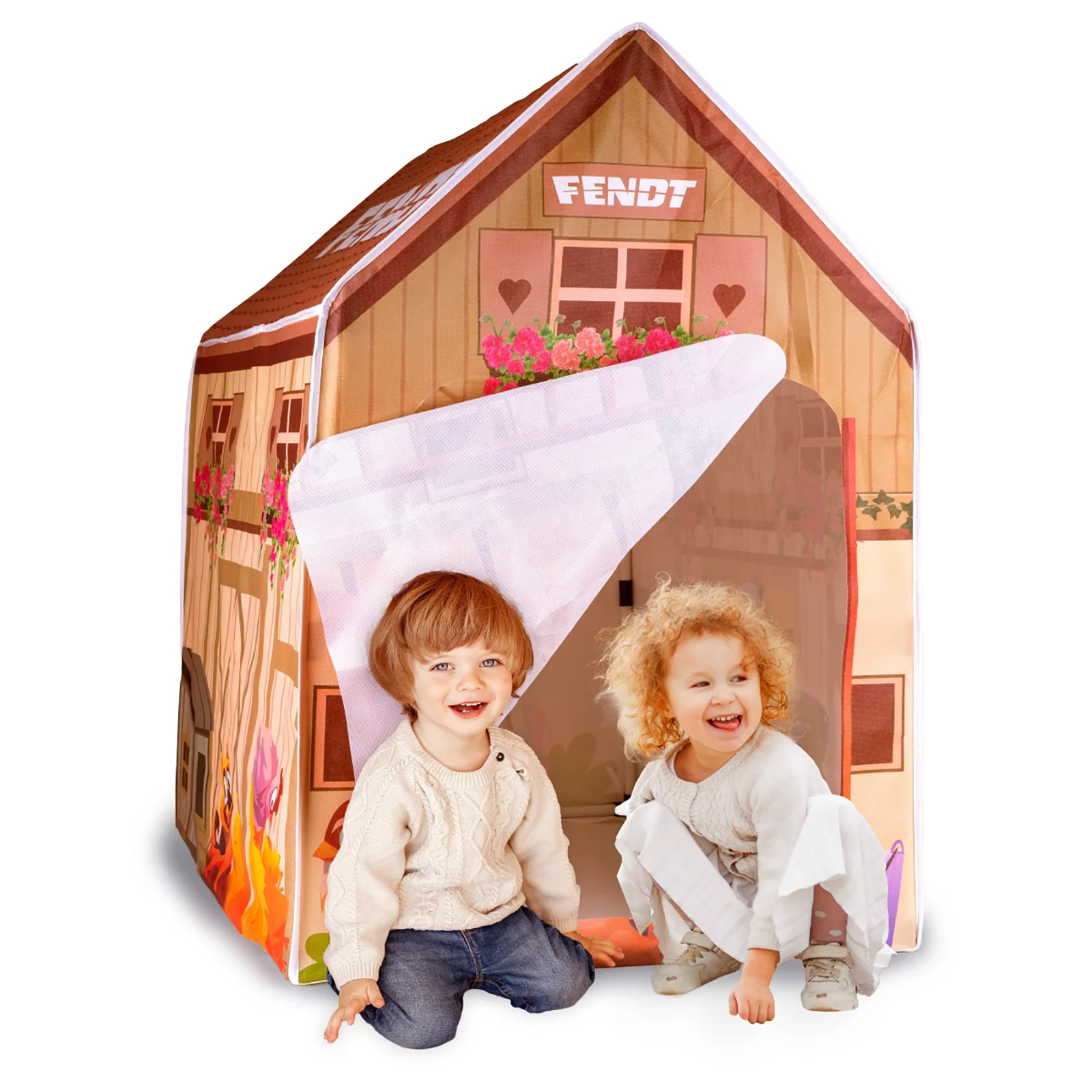 Un véritable atout pour la chambre d'enfant, la véranda ou l'aire de jeux : cette maison de jeux est conçue avec soin et invite les enfants à partir de 18 mois à jouer, lire ou se cacher. Son design rappelle une ferme typique de l'Allgäu : avec ses couleurs vives, son tracteur Fendt et ses joyeux animaux de la ferme, elle ravira autant les filles que les garçons.