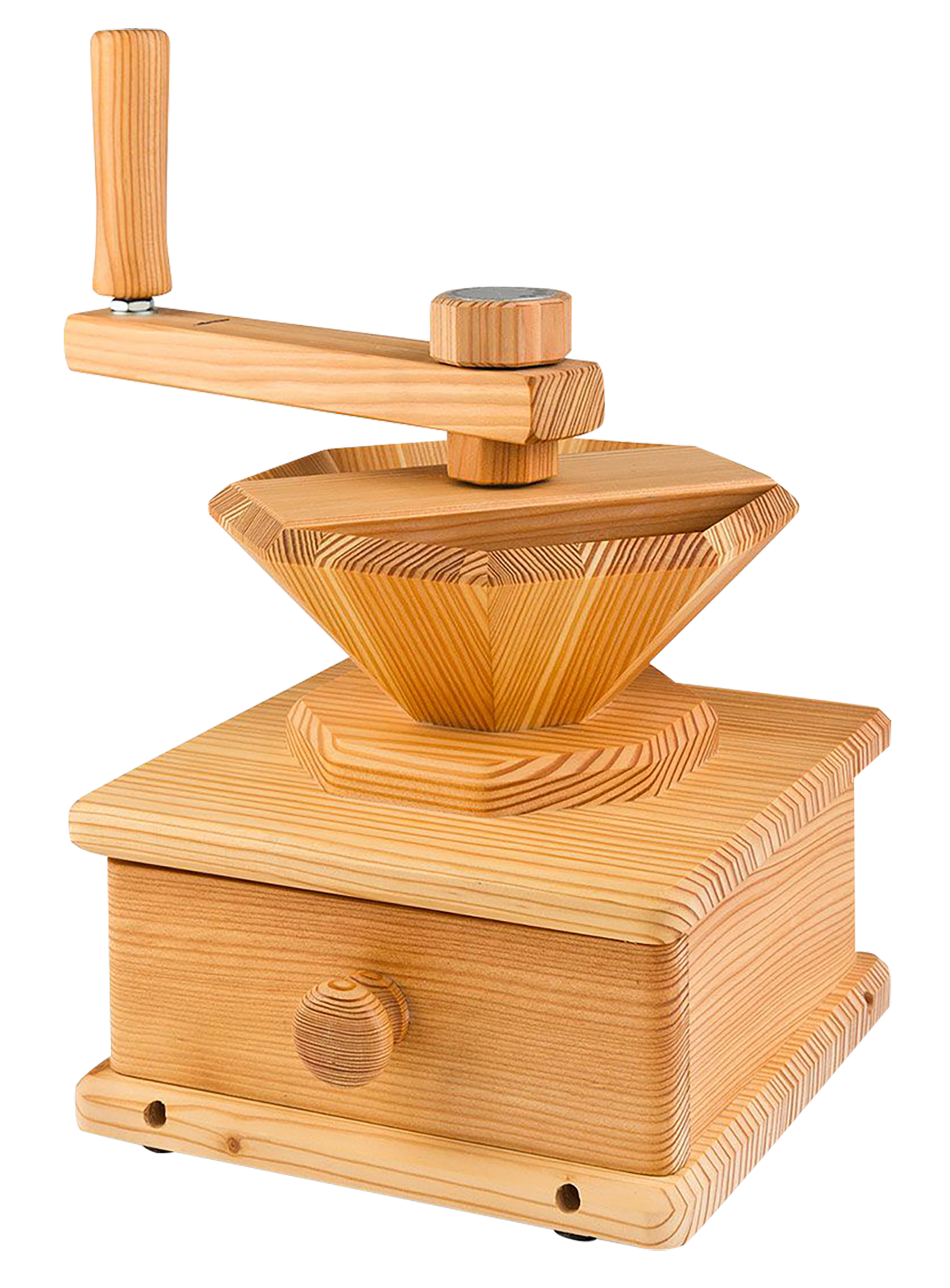 Moudre facilement avec le TOSKANA. Fini les manivelles fatigantes dans des positions inconfortables ! Le moulin à main TOSKANA est conçu pour pouvoir être facilement posé sur les genoux. Les pinces de table en option assurent une stabilité maximale. Asseyez-vous, tournez et dégustez de la farine fraîche : le travail manuel n'a jamais été aussi agréable.