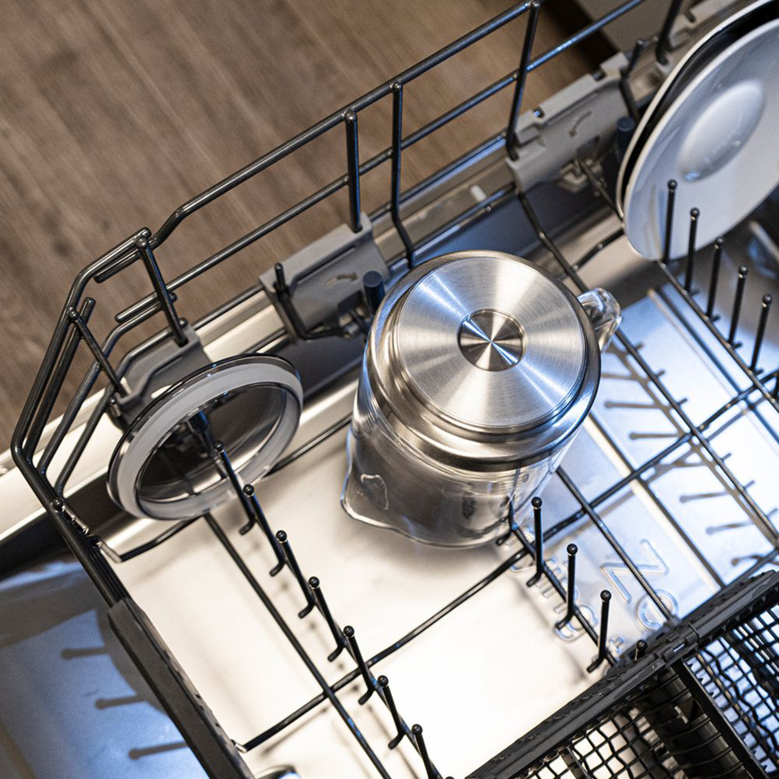 Sécurité optimale : démarrage impossible avec la carafe fixée, signal sonore de fin de programme, pieds en silicone antidérapants.