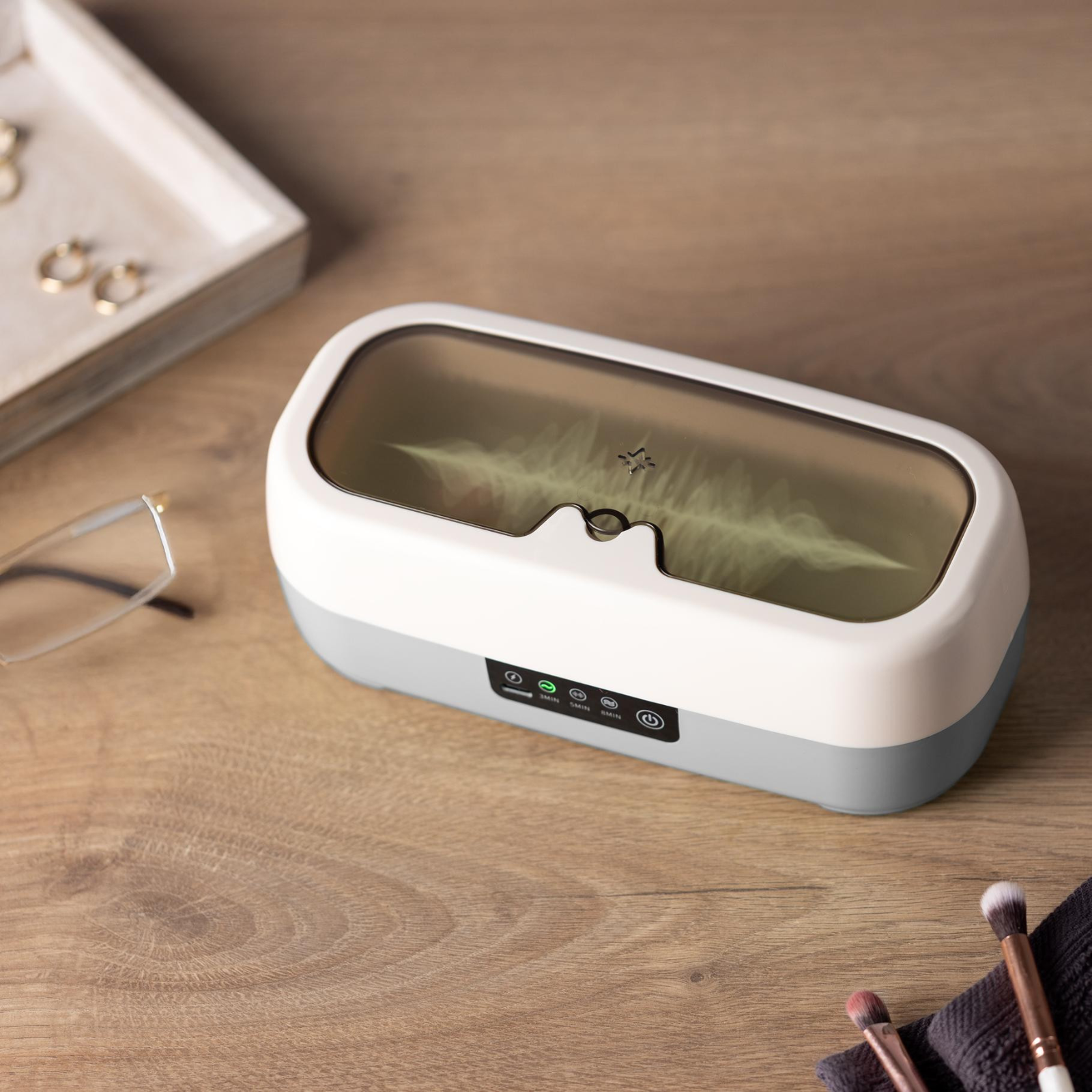 Redonnez à vos objets préférés leur éclat d'origine ! Qu'il s'agisse de lunettes, de bijoux, de montres ou de prothèses dentaires, ce nettoyeur compact combine des vibrations puissantes et une lumière bleue hygiénique pour un résultat parfait.