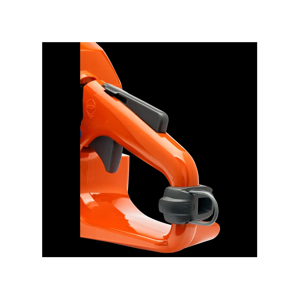 L'œillet est simplement fixé à la poignée arrière de la tronçonneuse. Vous pouvez ensuite utiliser la ceinture de tronçonneuse ou la sangle d'équipement. pour sécuriser la scie rapidement et facilement. La manière sûre d'attacher la tronçonneuse à la corde de sécurité !