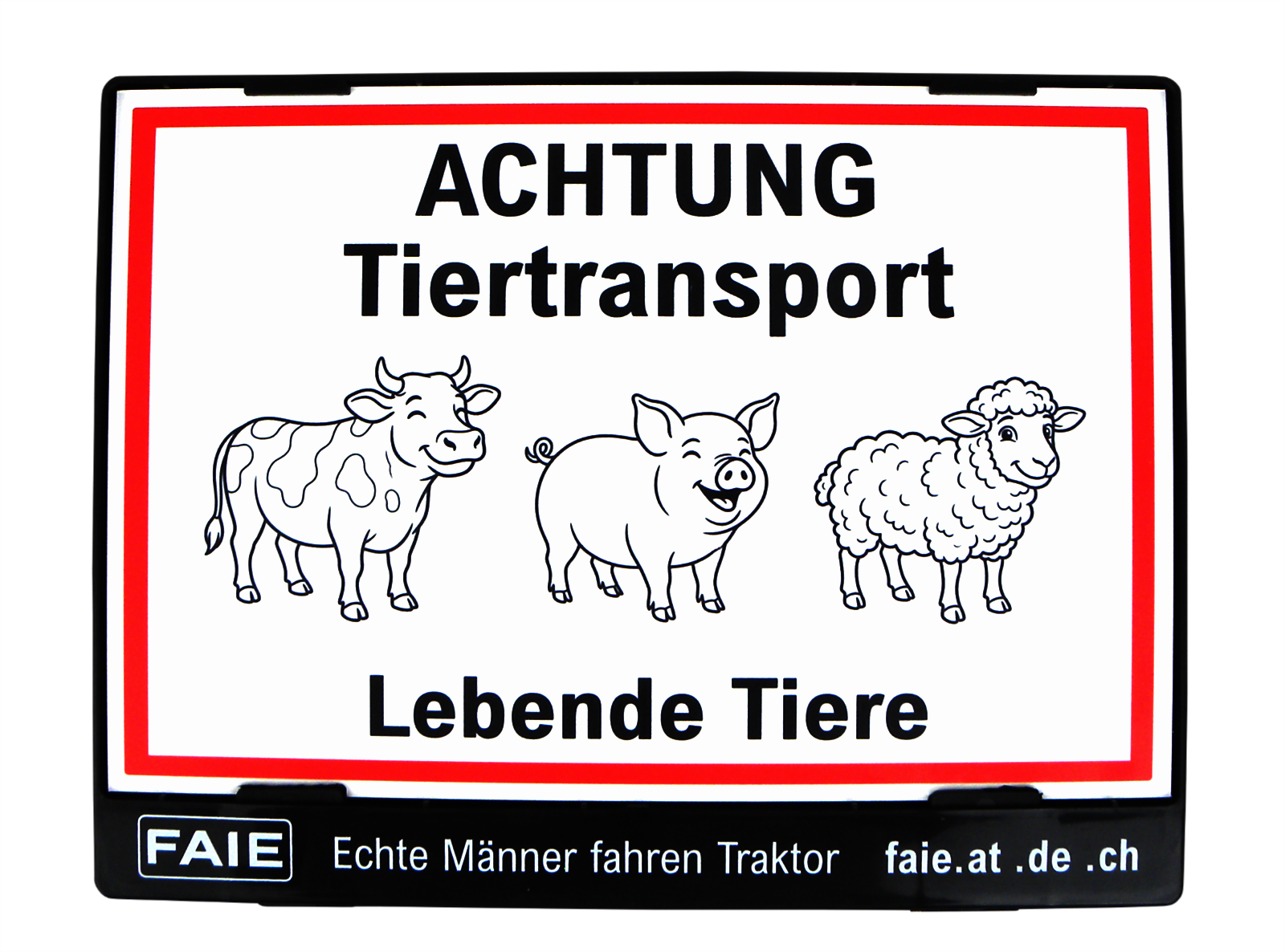 Panneau d'avertissement : Transport d'animaux / Animaux vivants. Plaque de support en plastique de 2 mm. Dimensions : 300 x 200 mm (L x H).