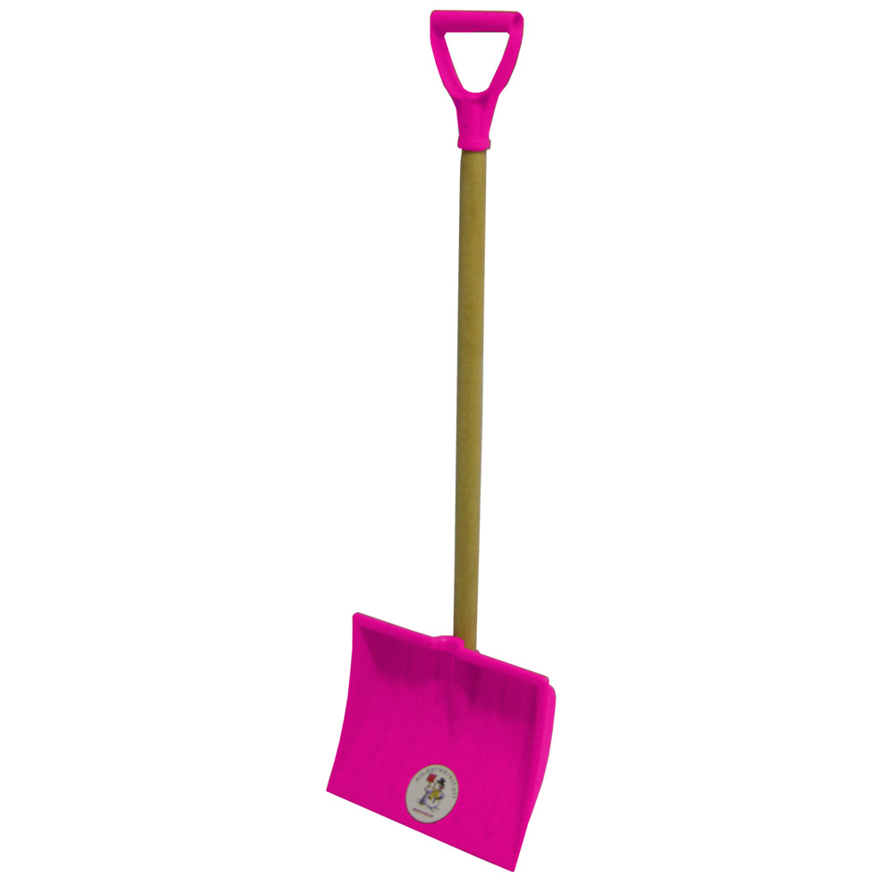 Pelle à neige pour enfants 245 x 190 mm en plastique, rose. Avec manche en bois robuste avec poignée en D, rose. Longueur totale : 790 mm.