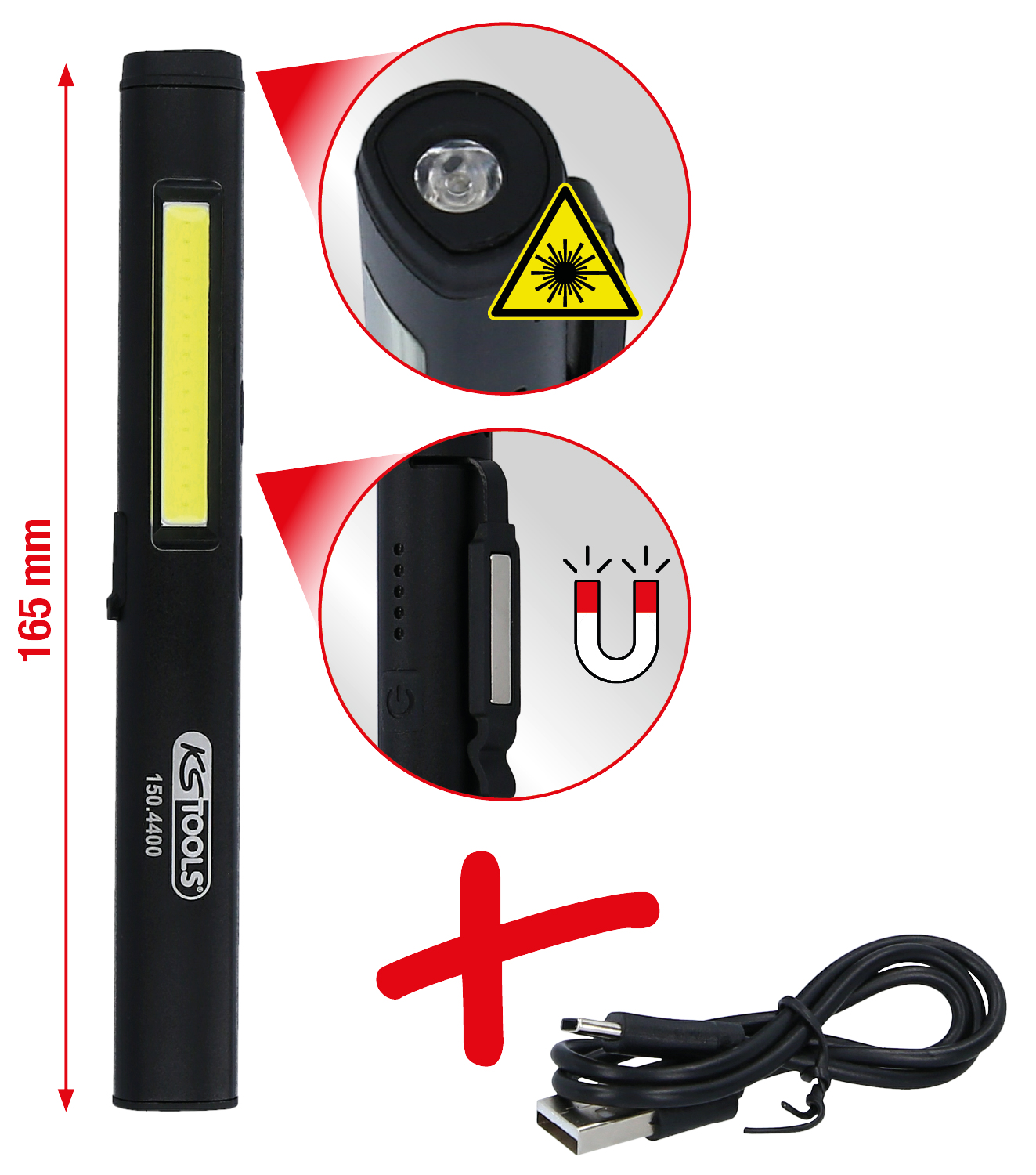 Informations sur le produit "Penlight LED COB 350 lumens pointeur laser et lumière UV, aluminium"