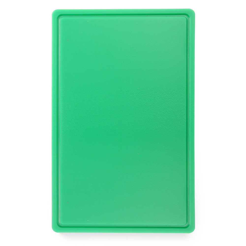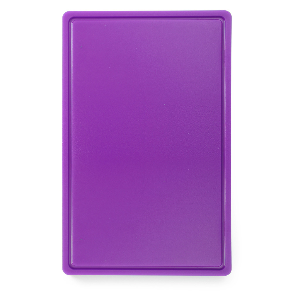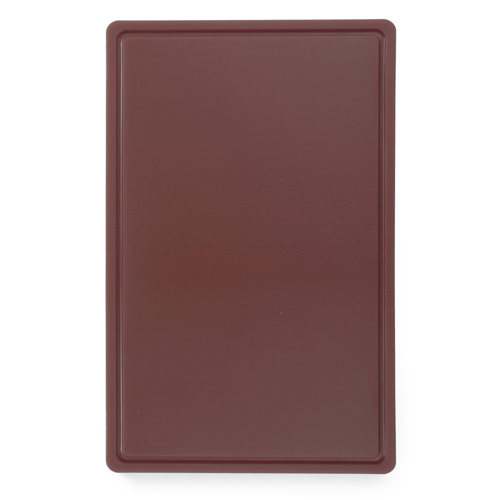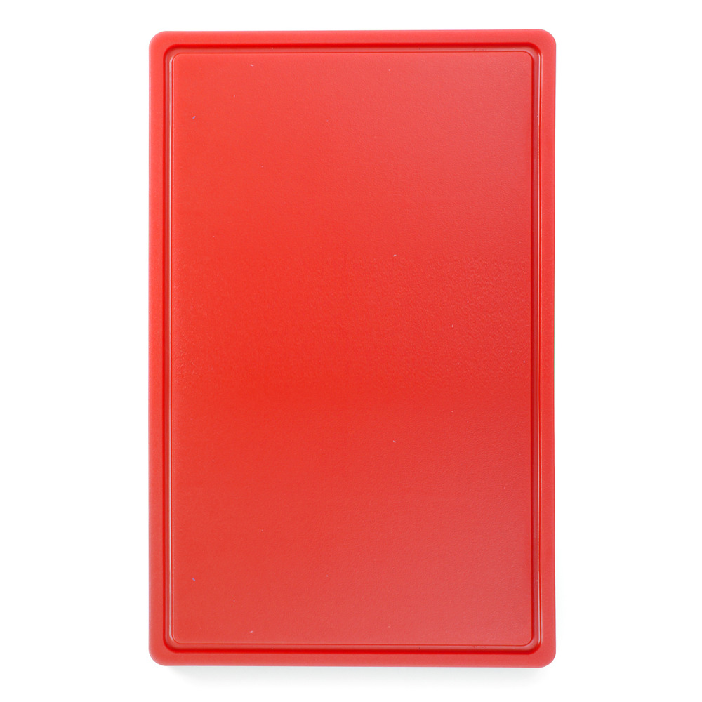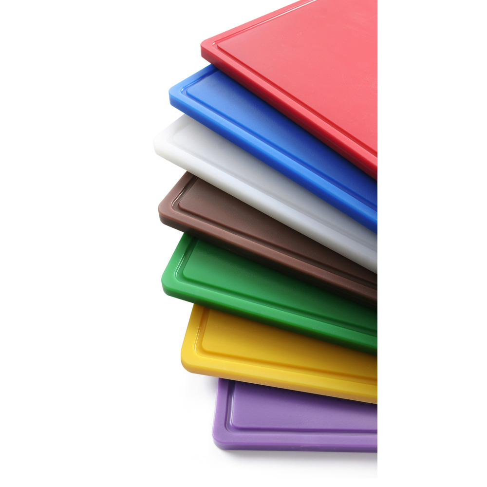 En plastique HDPE 500, conforme à la norme HACCP, lisse d'un côté, avec rainure à jus d'un côté, 530x325x15 mm (GN1/1), lavable au lave-vaisselle professionnel (programme court)