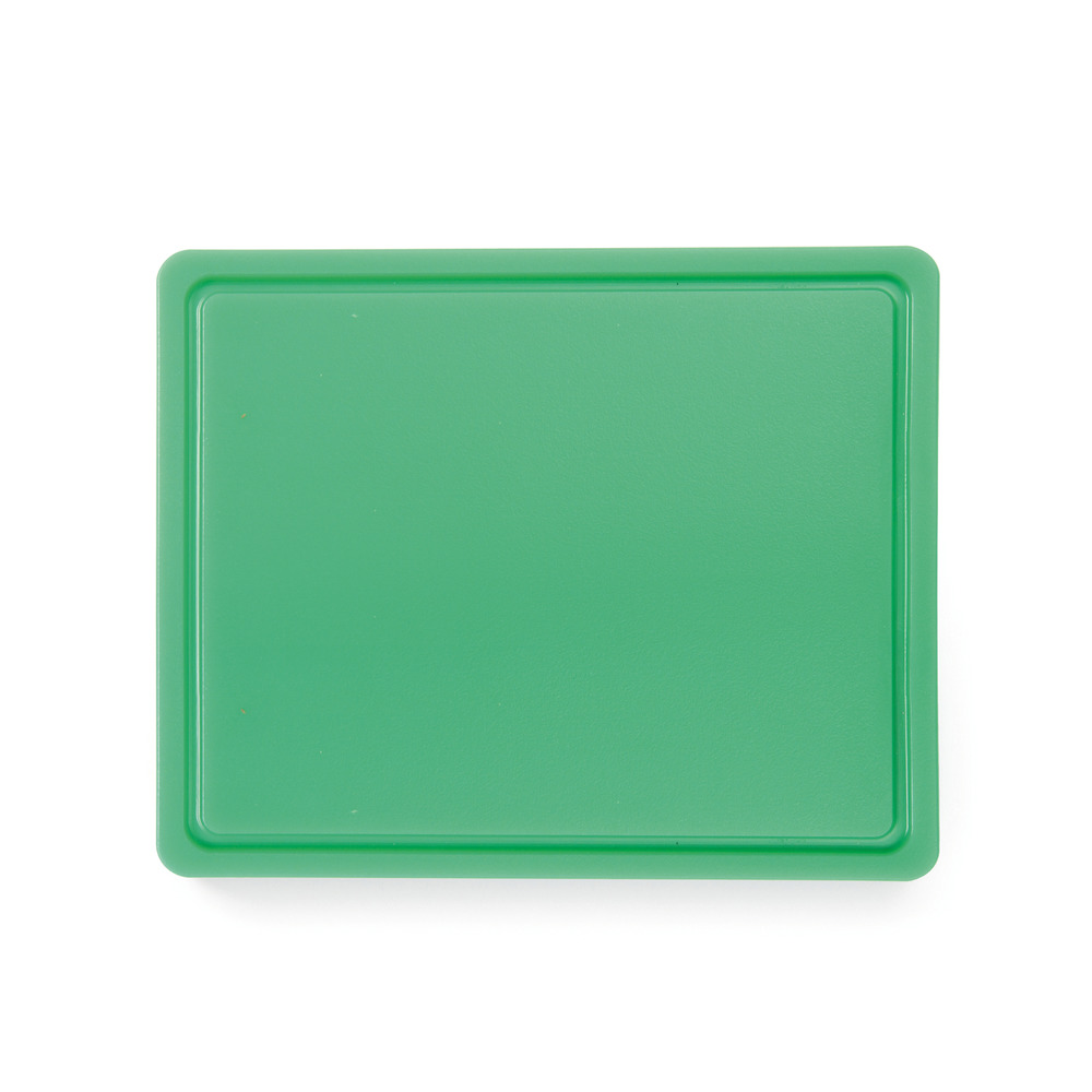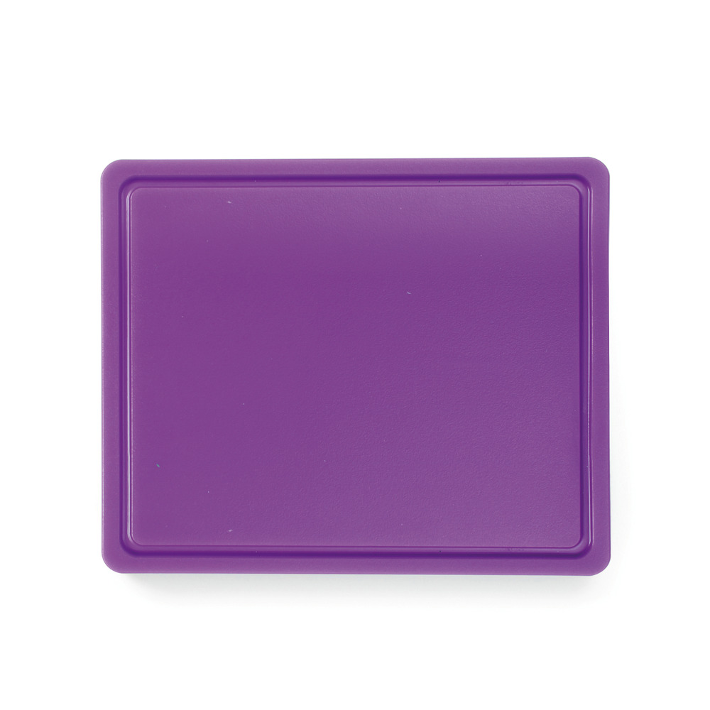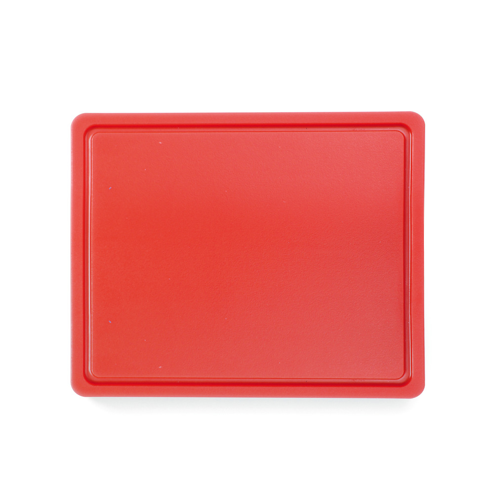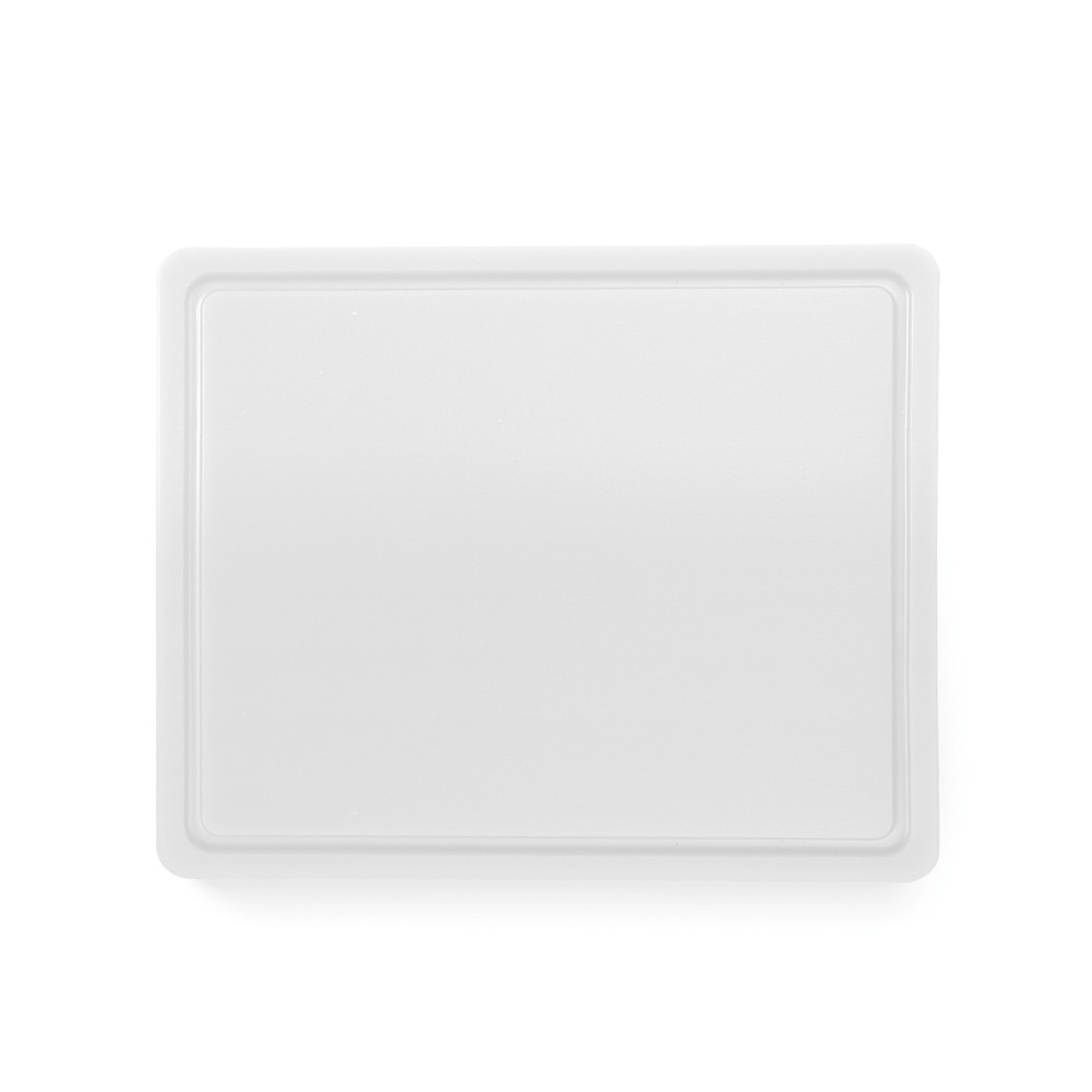 En plastique HDPE 500, conforme à la norme HACCP, lisse d'un côté, avec rainure à jus d'un côté, 260x320x12 mm (GN1/2), lavable au lave-vaisselle professionnel (programme court)