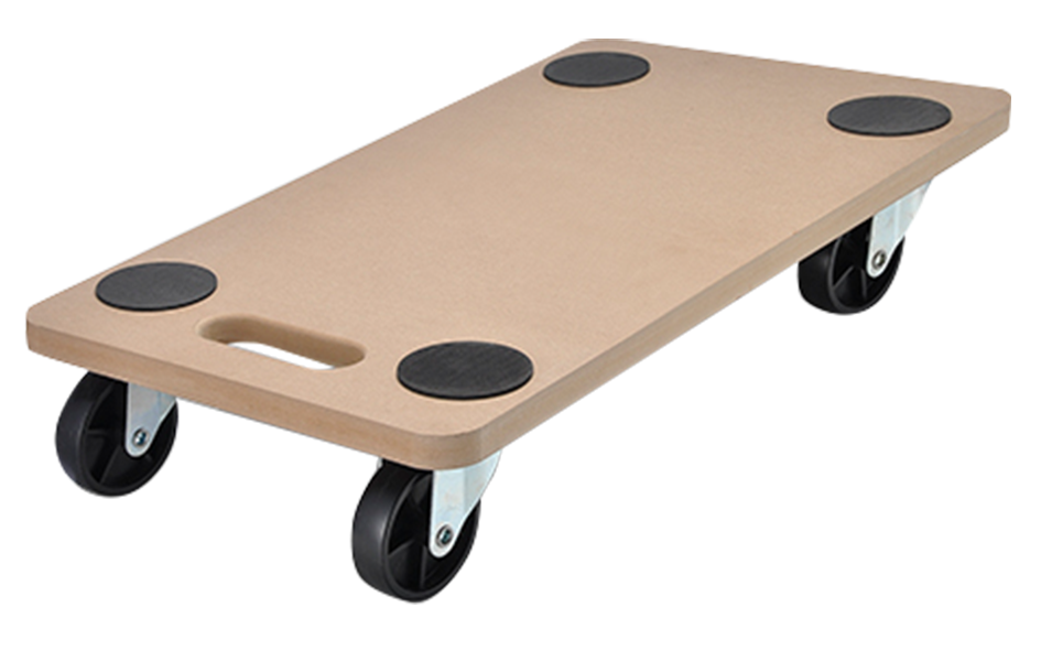 Plateau en MDF avec 4 roulettes à rotation libre et poignée de transport,