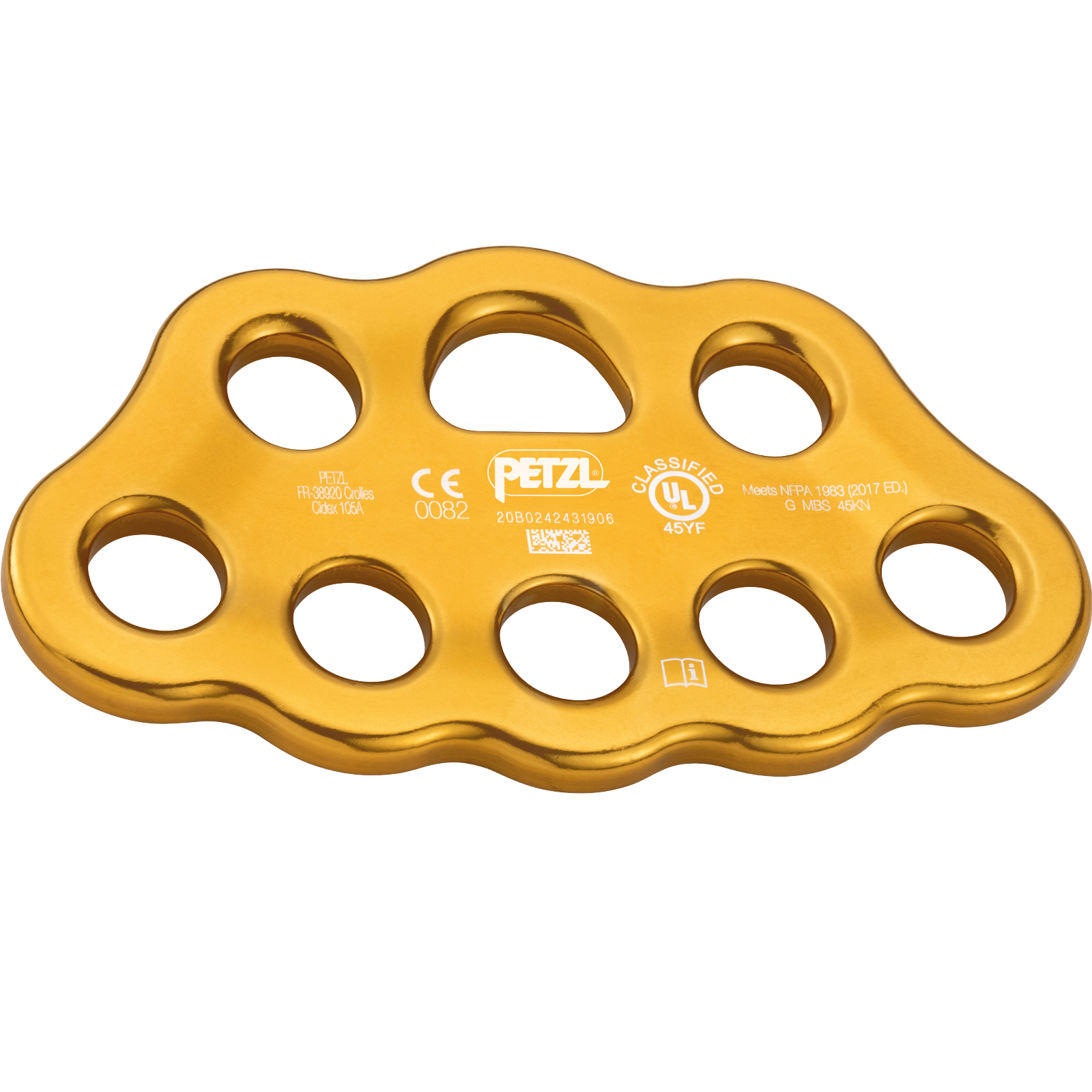 Plaque de gréage PAW pour organiser le poste de travail et créer un système avec plusieurs points d'ancrage, les œillets sont dimensionnés pour permettre le passage de cordes et d'élingues ou de mousquetons pour une connexion directe, très léger - fabriqué en aluminium forgé, charge de rupture élevée - 45 kN, très léger - seulement 180 g.