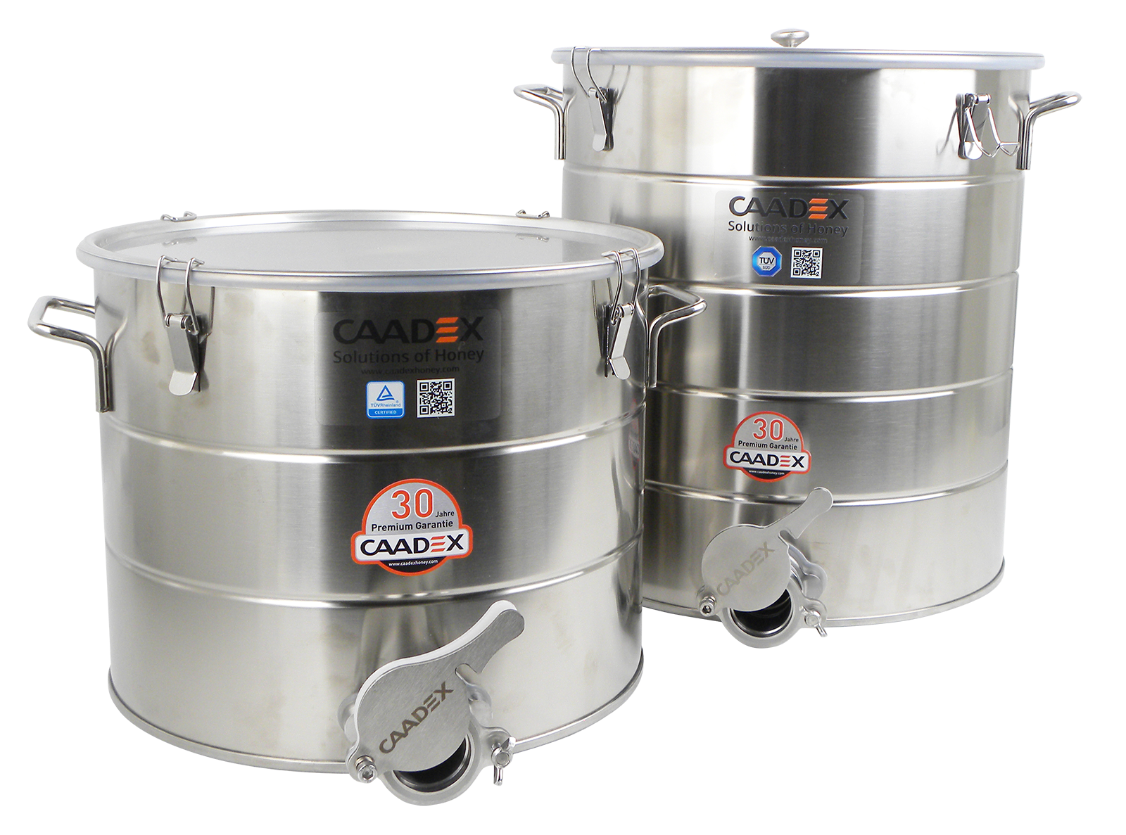 Bidon de remplissage pour miel de haute qualité, entièrement en acier inoxydable, avec 4 fermetures à tension et joint d'étanchéité en silicone.