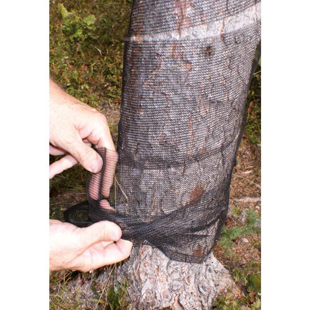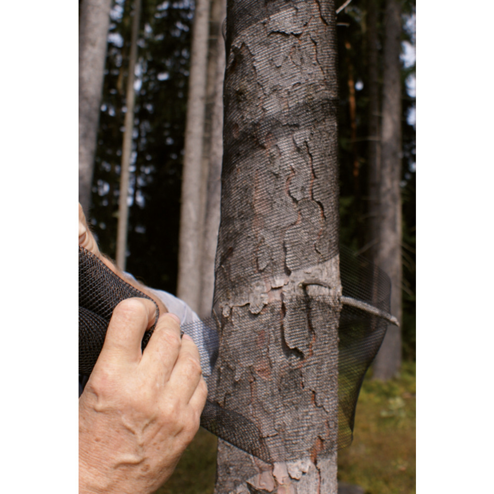 Filet en plastique éprouvé contre les dommages causés par le pelage du cerf élaphe et le daim ainsi que par le rongement du petit gibier. Longue durée, extensible dans le sens de la longueur et dans le sens transversal. Rouleau :Largeur 15 cm, longueur 100 m, Nécessite environ 5 m/tronc.