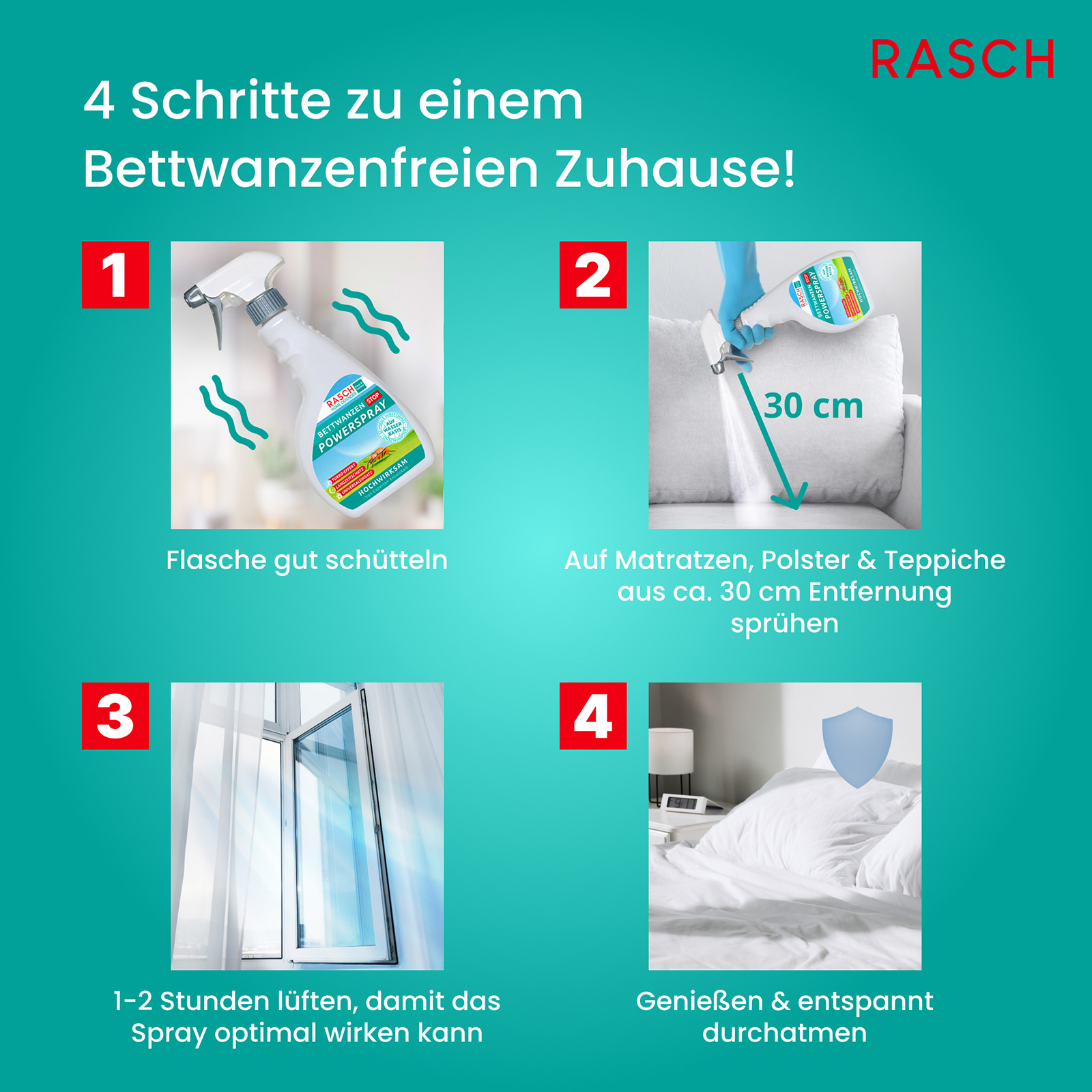Débarrasse ta maison des punaises de lit de manière efficace et sûre. Bien agiter avant l'application, vaporiser les endroits concernés à une distance de 30 cm, bien aérer les pièces et les textiles pendant 2 à 3 heures après la vaporisation. Également efficace contre les acariens. Après la pulvérisation, le spray contre les cafards reste efficace pendant 4 à 6 semaines. Vaporisateur de 500 ml.